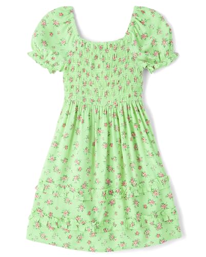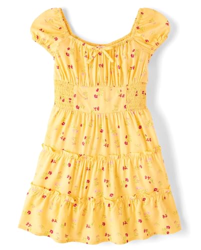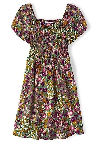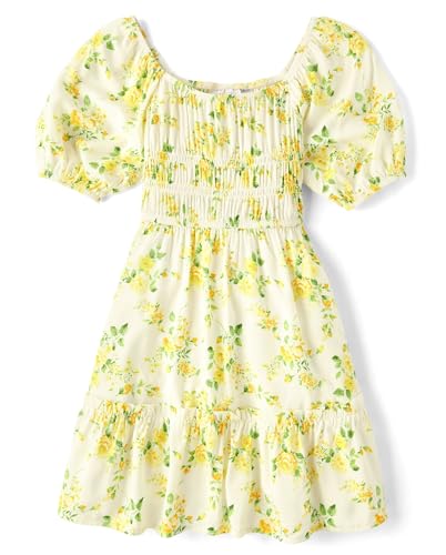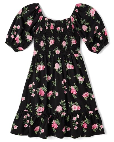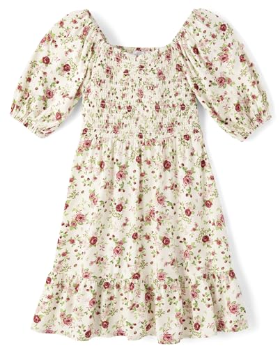 {"about_product": ["FABRICATION: 100% rayon challis, imported", "FIT & DESIGN: Elasticized round neck, 3/4th puff sleeves with elasticized cuffs, ruffle hem, above-knee length", "CLOSURE: Pullover style with stretch waist", "FEATURES: Smocked details at bodice, tiered body, floral print", "THE CHILDREN'S PLACE — We offer a huge selection of kid's clothing! Shop us for jeans, shorts, leggings, chinos, polo shirts, dresses, pajamas, and accessories."], "product_description": "The Children's Place girls Floral Smocked Babydoll Dress", "product_information": {"ASIN": "B0CRBKQ4BS", "Department": "girls", "Customer Reviews": "4.6 4.6 out of 5 stars \n\n (716)", "Best Sellers Rank": "#29,874 in Clothing, Shoes & Jewelry (See Top 100 in Clothing, Shoes & Jewelry) #90 in Girls' Casual Dresses", "Date First Available": "January 2, 2024"}, "product_details": {"Origin": "Imported", "Fabric type": "100% Rayon", "Closure type": "Pull On", "Care instructions": "Machine Wash"}}
