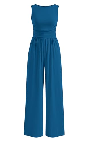 {"about_product": ["Size Tips: S=US 4-6, M=US 8-10, L=US 12-14, XL=US 16, 2XL=US 20.Made of soft, breathable, lightweight, skin-friendly and strechy material, tank tops with soft lining, no see-through.Jumpsuits for women casual are ideal for all-day wear, perfect blend of style and comfort", "Feature: Sleeveless jumpsuits for women, round neck, high waist, waist side ruched, loose fit jumpsuits rompers provide comfort and freedom of movement, back button closure makes it easy to put on and take off.Womens jumpsuits with pockets add both functionality and causal", "Design: Womens jumpsuits are versatile and chic.Summer romper jumpsuits; womens jumpsuits casual; jumpsuits for women elegant; black pants suits; petite jumpsuits for women; one piece jumpsuits for women; jumpsuits wide leg design for curvy women, give it a relaxed and elegant look", "Match: Trendy one-piece clothes that is playful and versatile, convenient for various look.Jumpsuits for women casual dressy; wide leg jumpsuits; fashion overalls; jumpsuits for women casual petite; jumpsuits for women elegant easy to pair with sandals, high heels, handbags, sunglasses, etc", "Occasion: Jumpsuits for women dressy casual; women jumpsuits formal dressy; business casual outfits; vacation outfits for women; women wedding guest jumpsuits; wide-leg rompers jumpsuits are perfect for casual or formal, going out, travel, party, concert, office, any summer outfit"], "product_description": null, "product_information": {"ASIN": "B0DK54122D", "Department": "Women", "Customer Reviews": "4.3 4.3 out of 5 stars \n\n (1,224)", "Best Sellers Rank": "#10,788 in Clothing, Shoes & Jewelry (See Top 100 in Clothing, Shoes & Jewelry) #17 in Women's Jumpsuits", "Item model number": "ZF048", "Package Dimensions": "11 x 8 x 0.4 inches; 8.82 ounces", "Date First Available": "October 16, 2024"}, "product_details": {"Origin": "Imported", "Fabric type": "Shell: 65% Polyester, 30% Viscose, 5% Elastane; Lining: 95% Polyamide, 5% Elastane", "Fur description": "65%Polyester+30%Viscose+5%Elastane", "Care instructions": "Machine Wash"}}