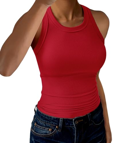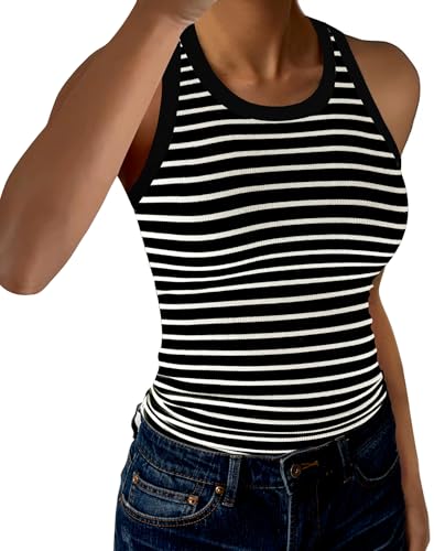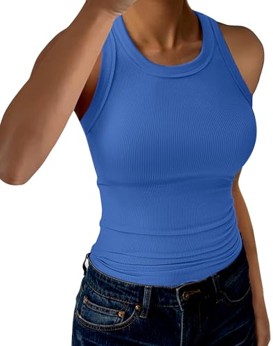 {"about_product": ["【Material】: The women tank tops very soft, comfortable,lightweight, breathable and stretch to wear in daily life as casual clothes in Summer, as workout, Sports and street top in hot summer, spring and fall days.", "【Design】: Racerback Tank Tops cut for full range of movement. hip length, high crew neck for decent coverage. Sleeveless Tops and slim fit design can show your beautiful body curves.", "【Matching】: This tank tops is a versatile piece that can be styled in many different ways. For a casual look, pair it with high-waisted jeans, sport pants or shorts. Add a denim jacket or cardigan for a cozy layering option. Alternatively, wear it with a blazer and pencil skirt for a chic office look. It's perfect for daily wear or sport wear and can be layered with tops, or worn alone, this tank tops is a must-have addition to any fashion-forward wardrobe.", "【Occasions】:This ribbed tank top is perfect for a variety of occasions. Such as party, club, daily life, work, shopping, office, home, sleep, beach and summer indoor and outdoor activities. Not only that, its Perfect for yoga, exercise, fitness, any type of workout.", "【Size】: This classic sleeveless tank top is available in six sizes XS-XXL. Please refer to the size information in the picture description to choose your size. Colors may be lighter or darker due to different computer monitors."], "product_description": null, "product_information": {"ASIN": "B0D3LVQCBD", "Department": "womens", "Customer Reviews": "4.4 4.4 out of 5 stars \n\n (1,704)", "Best Sellers Rank": "#9,068 in Clothing, Shoes & Jewelry (See Top 100 in Clothing, Shoes & Jewelry) #39 in Women's Tanks & Camis", "Date First Available": "May 8, 2024"}, "product_details": {"Origin": "Imported", "Fabric type": "96%Viscose 4%Elastane", "Closure type": "Pull On", "Care instructions": "Machine Wash"}}