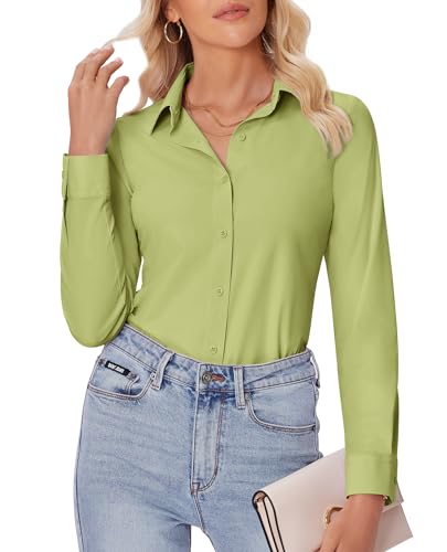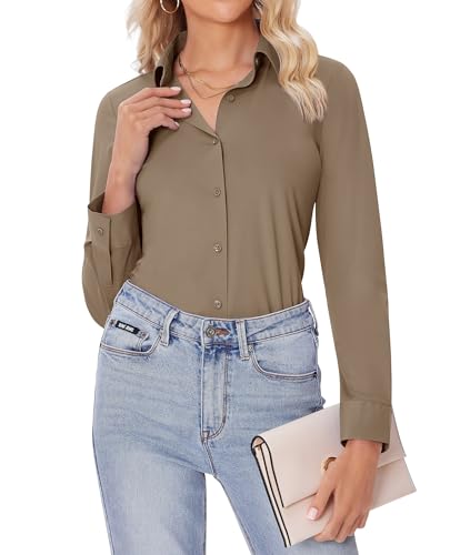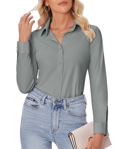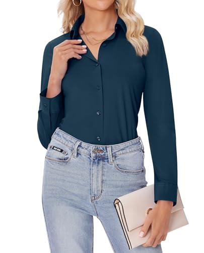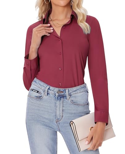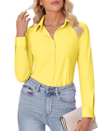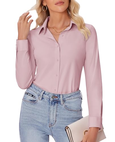 {"about_product": ["Stretch Fit Design: Enhance your style and comfort with our button down shirts for women featuring a stretch fit. The wrinkle-free, stretchy fabric keeps you polished and comfortable all day, whether at work or on the go", "Practical Design: These dress shirts for women offer a professional button-down closure and long sleeves for added coverage. Perfect for business meetings, work, or casual outings, combining style and functionality", "Versatile & Easy to Match: The long sleeve shirt for women pairs easily with trousers, blazers, jeans, shorts, or leggings. Ideal for the office, meetings, or daily wear, all year round", "Perfect for Every Occasion: Whether you're at work, a meeting, a party, or traveling, this womens button down shirt is versatile and high-quality, perfect for any situation", "Easy Care: The womens button down blouse is simple to maintain, hand or machine wash. Effortlessly keep your wardrobe fresh without the hassle"], "product_description": null, "product_information": {"ASIN": "B0DKT5VW3Q", "Customer Reviews": "4.4 4.4 out of 5 stars \n\n (1,633)", "Best Sellers Rank": "#4,067 in Clothing, Shoes & Jewelry (See Top 100 in Clothing, Shoes & Jewelry) #11 in Women's Button-Down Shirts", "Date First Available": "October 24, 2024"}, "product_details": {"Origin": "Imported", "Fabric type": "74% Nylon, 26% Spandex", "Closure type": "Button", "Care instructions": "Machine Wash"}}