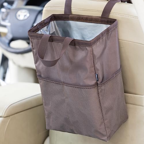 {"about_product": ["MULTIFUNCTIONAL BAG - New designed to meet a variety of daily need. 1, As a TRASH BAG with hook & loop closure that keep the car clean. 2, As a SHOPPING BAG with handles, convenient carry your purchases with it. 3, As a COOLER with double layers, the inner PEVA lining keeps items hot/cool for a certain period. 4, As a WATER CARRYING BAG with leakproof lining, great for outdoor activities.", "EXTRA STORAGE SPACE : Car trash bag comes with mesh pockets on the outside of the trash bin for storing small items like wipes, water bottle, snack packs etc. Trash can for cars can be used as a car storage bag, car organizers, car stuff, car gadgets, makes everything well organize.", "LEAKPROOF HOOK & LOOP CLOSURE DESIGN : This car garbage bag is hook & loop closure opening design, easy to open and close. Help keeping car garbage out of sight and preventing the release of foul odors into the car.", "PORTABLE COOLING SOLUTION : Car trash bag is designed with leakproof PEVA lining which can be easily changed as a cooler bag for temperature retention. This car bag offers a convenient and portable means of keeping drinks or food items chilled during travel or camping,outdoor activities. The interior of the car garbage can is easily wipes clean.", "WIDELY USE : The hanging car trash bag comes with adjustable strap that can be secured any height to a headrest, console, glove box, armrest box, door that in reach of the driver. Automotive garbage cans are easy to install and remove as needed, great car accessories for most kinds of vehicles like Sedans, Trucks, MPVs, RVs, Vans, Minivans, SUVs.", "FAMILY FRIENDLY : This car trash bag for back seat has large-capacity storage, accommodates various types of refuse, from snack wrappers to tissues, making it ideal for keeping your car neat during family outings or daily commutes with children. The car trash bag can be folded up when not in use to save space, portable for long road-trip and travel."], "product_description": null, "product_information": {"ASIN": "B0DLKBSJ6F", "Manufacturer": "Ginsco", "Customer Reviews": "4.6 4.6 out of 5 stars \n\n (608)", "Best Sellers Rank": "#1,574 in Automotive (See Top 100 in Automotive) #24 in Automotive Garbage Cans", "Item model number": "TS35", "Product Dimensions": "9.84 x 5.91 x 13.78 inches; 7.05 ounces", "Date First Available": "October 31, 2024"}, "product_details": {"Brand": "Ginsco", "Color": "Black", "Shape": "Rectangular", "Capacity": "3.5 Gallons", "Material": "600D Oxford Fabric, PEVA Lining", "Room Type": "Home Office", "Finish Type": "Sewed", "Special Feature": "Adjustable, Large Capacity, Leakproof, Odor Seal, Portable", "Opening Mechanism": "Open-Top", "Recommended Uses For Product": "Sedan, Truck, MPV, RV, Vans, Minivans, SUV"}}