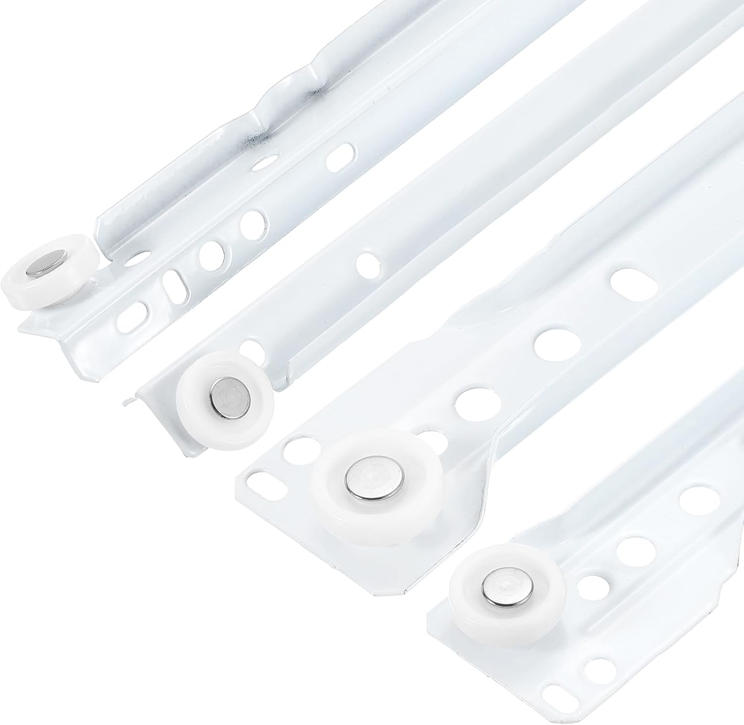 {"about_product": ["[What You Get] - Package comes with 2 pair of drawer slides bottom mount with 24 screws, with 550 x 20 x 10mm/21.65 x 0.79 x 0.39inch(L*W*T) in total size, 4 x 16mm/0.16 x 0.63inch(D*L) in screw size.", "[Material] - The bearing pulley is made of POM plastic, and the screw part is made of metal, which is strong and durable, wear-resistant, has good rigidity, and the metal threaded rod ensures durability and strong bearing capacity.", "[Feature] - The pulley has the strong load-bearing capacity, stable performance, and smooth rolling, and after installing the pulley, there will not be too much noise when pulling the drawer, which can provide smooth operation and noise reduction during operation, improving the overall user experience.", "[Easy to Install] - Just install the pulley on the cabinet door and top rail. These cabinet drawer sliding pulleys are designed for easy installation and maintenance, with quick replacement functions to maximize the function of furniture.", "[Wide Application] - Suitable for replacing worn or missing rollers on the metal drawer sliding system for most furniture, such as cabinet sliding doors, bedside tables, pet boxes, file cabinets, dressing table drawers, etc."], "product_description": null, "product_information": {"ASIN": "B0DLL4S9TW", "Size": "22 Inch", "Finish": "Unfinished", "Item Weight": "2.53 pounds", "Part Number": "f24100900ux5300", "Manufacturer": "uxcell", "Mounting Type": "Bottom Mount", "Number of Items": "2", "Best Sellers Rank": "#40,860 in Tools & Home Improvement (See Top 100 in Tools & Home Improvement) #71 in Cabinet & Furniture Drawer Slides", "Item model number": "f24100900ux5300", "Product Dimensions": "21.65 x 0.79 x 0.39 inches", "Batteries Included?": "No", "Batteries Required?": "No", "Included Components": "4Pcs x Drawer Slides Bottom Mount 12Pcs x Screws", "Date First Available": "October 31, 2024", "Item Package Quantity": "8"}, "product_details": {"Brand": "uxcell", "Color": "White", "Material": "Metal", "Finish Type": "Unfinished", "Product Dimensions": "21.65"L x 0.79"W x 0.39"Th"}}