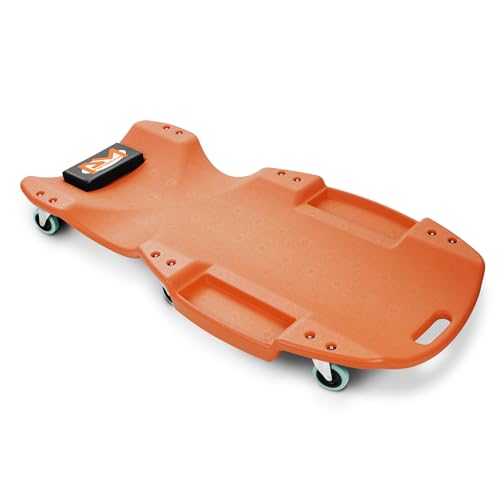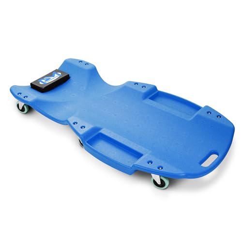 {"about_product": ["Ergonomic designed with a built-in shoulder reces, This advanced design give you more support from the frame when you sit slowly on the end of the creeper, and lay back to rest your head on the padded headrest to give you the extra relief.", "36\" Long X 17\" Wide X 4.25\" H Overall Size; 6 X 2.5\" Diameter Non Marring Polyurethane Swivel Caster Wheels; Low Profile 4.25\" Height for Increased Clearance Under Vehicle", "200 Lbs Max Load Capacity with Padded Headrest, fits for most users. Socket Tool Included for Easy Assembly; Side Pockets for Holding Tools & Bolts", "High-Density Polyethylene Construction Frame, lightweight design, only weighs 9lbs, however it is extremely strong. With its impact resistant, it gives most users extra comfort while laying on it.", "Portable design carrying handle at the bottom which makes this rolling cart easy to pick up, position, and transport, allows you to work in your garage or workshop with ease."], "product_description": "Easily clear the undercarriage of most vehicles with this oversized low-profile automotive creeper. The automotive creeper has a High-density polyethylene body that won't rust and is easy to clean. With a padded headrest and capacity up to 300 lb., this low-profile creeper is comfortable and durable.", "product_information": {"UPC": "840398409777", "ASIN": "B0DMVQ4617", "Brand": "PM PERFORMOTOR", "Color": "Blue", "Style": "Compact", "Material": "High-Density Polyethylene", "Wheel Type": "Caster", "Item Weight": "10.38 pounds", "Manufacturer": "PM PERFORMOTOR", "Load Capacity": "200 Pounds", "Number of Wheels": "6", "Best Sellers Rank": "#218,583 in Automotive (See Top 100 in Automotive) #136 in Garage Shop Creepers", "Item model number": "PM-TOL-CPC36-BL", "Batteries required": "No", "Product Dimensions": "36\"L x 17\"W x 4.25\"H", "Included Components": "1 X Automotive Creeper"}, "product_details": {"Brand": "PM PERFORMOTOR", "Color": "Blue", "Style": "Compact", "Material": "High-Density Polyethylene", "Item Weight": "4.72 Kilograms"}}