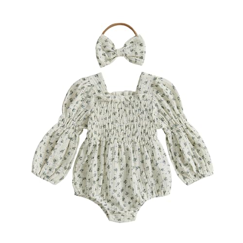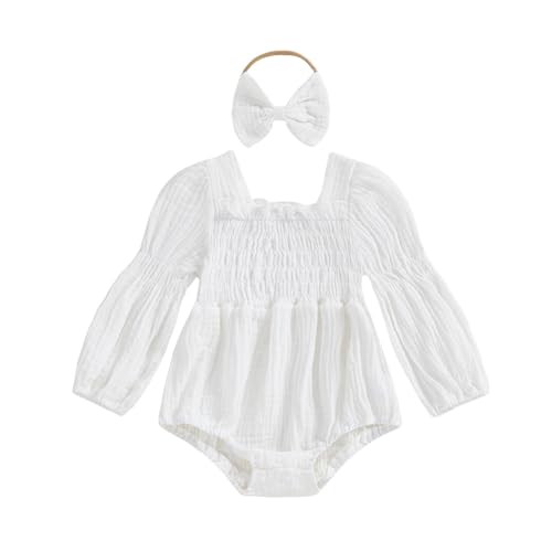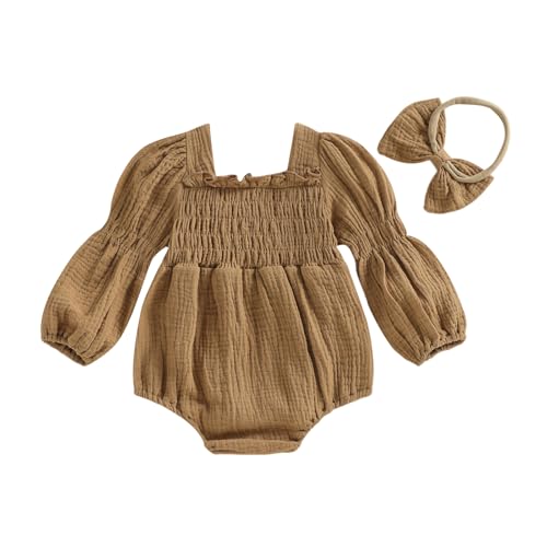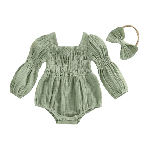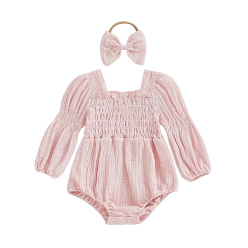 {"about_product": ["BABY GIRL ROMPER - This cotton linen Baby Girls' One-Piece Rompers is perfect for your little one's spring summer wardrobe. The puff lantern sleeves and pleated smocked design add a touch of charm, while the elastic boat square neck ensures a comfortable fit. The bottom snap closure makes changing diapers a breeze, and the matching bow headband completes the look. Your baby girl will look fashionable and lovely in this boho-inspired romper", "SIZING AND CARE - Super cute baby girl bubble romper, newborn girl outfits, baby girl outfits 0-3 months, baby girl outfits 3-6 months, baby girl clothes 6-9 months, 9-12 month girl clothes, baby girl romper 12-18 months, 12 months girl clothes. Keep this adorable baby bubble romper looking great for years to come, pls hand wash cold, line dry. Do not bleach, iron, or tumble dry", "INFANT GIRL CLOTHES- The baby girls' clothing is suitable for birthday gifts, baby shower gifts and Christmas gift for daughter, granddaughter, niece. Nice for photography props, smash cake outfit and holiday, christenings, Halloween, Christmas, Mother's Day ,Easter, summer picnics, birthday parties", "PACKAGE INCLUDED- 1x baby girl smocked romper + 1x headband, baby girl newborn clothes", "NO SCRATCHY TO GIRLS SKIN - The main material of this baby girl smocking styles dresses bubble romper is cotton blend. Very soft and breathable cotton material, will keep your little princess comfortable all party long"], "product_description": null, "product_information": {"ASIN": "B0DNSJNWGL", "Department": "baby-girls", "Manufacturer": "Kavousa", "Customer Reviews": "4.3 4.3 out of 5 stars \n\n (124)", "Product Warranty": "For warranty information about this product, please click here", "Best Sellers Rank": "#17,491 in Clothing, Shoes & Jewelry (See Top 100 in Clothing, Shoes & Jewelry) #8 in Baby Girls' One-Piece Rompers", "Date First Available": "November 22, 2024"}, "product_details": {"Origin": "Imported", "Fabric type": "70% Cotton, 30% Polyester", "Care instructions": "Hand Wash Cold, Line Dry. Do Not Bleach, Iron, or Tumble"}}
