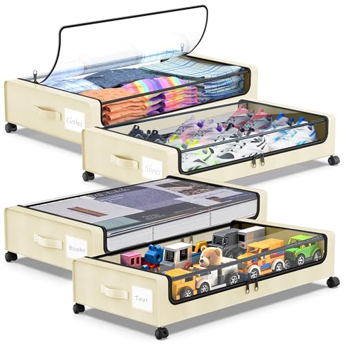 {"about_product": ["Dimensions - 30.75 x 17 x 6.5 inches (with wheels)", "Large Capacity - Under bed storage is made of high quality fabric and sturdy metal frame, and the load-bearing capacity is doubled. perfect for storing seasonal clothes, shoes, toys, books, holiday decorations, christmas wrapping papers and etc. A good choice for room organization and storage.", "360° Swivel Wheels - The Underbed Storage Cabinet with Wheels has 4 smooth 360° swivel wheels that glide easily over a variety of floors and carpets. Thanks to the rolling design, it can also be used as an underbed drawer on wheels. You can remove the metal frame and easily place storage bags on the closet. Free up extra closet and drawer space.", "Clear Window - Molutsody Underbed Storage Box has a large clear, see-through PVC window with a metal zipper closure to protect items from dust, insects and moisture. This underbed storage box will fulfill your long-term storage needs.", "VERSATILE USE - This under bed clothing organizer is perfect for seasonal under bed clothing storage, under bed shoe storage, bedding storage, it can also be placed under cribs, sofas and furniture.", "CUSTOMER SERVICE - If you are not satisfied with your underbed organizer purchase for any reason, such as damage during shipping, just let us know and we will replace it or refund your money, your choice!"], "product_description": null, "product_information": {"ASIN": "B0DP76RZDR", "Size": "2 Pack", "Brand": "Molutsody", "Color": "Black", "Shape": "Rectangular", "Style": "Minimalist", "Pattern": "Solid", "Capacity": "60 Liters", "Material": "Fabric, Metal", "Unit Count": "2.0 Count", "Item Weight": "7.52 pounds", "Closure Type": "Zipper", "Manufacturer": "Molutsody", "Storage Volume": "60 Liters", "Number of Items": "2", "Special Feature": "360°Rotating Wheels, Dustproof, Clear Lids", "Material Feature": "Sturdy and Durable", "Special Features": "360°Rotating Wheels, Dustproof, Clear Lids", "Best Sellers Rank": "#18,445 in Home & Kitchen (See Top 100 in Home & Kitchen) #22 in Under-Bed Storage", "Item model number": "MXL-2025B2", "Opening Mechanism": "Zipper", "Product Dimensions": "31.75\"L x 17\"W x 6.5\"H", "Batteries Included?": "No", "Batteries Required?": "No", "Included Components": "2 Pack Under Bed Storage", "Date First Available": "November 28, 2024", "Item Package Quantity": "1", "Water Resistance Level": "Waterproof", "Recommended Uses For Product": "under bed storage under bed shoe storage under bed clothes storage", "Assembly Instructions Description": "Tool-less, 15-minute installation"}, "product_details": {"Brand": "Molutsody", "Color": "Black", "Style": "Minimalist", "Material": "Fabric, Metal", "Special Feature": "360°Rotating Wheels, Dustproof, Clear Lids"}}