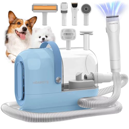 {"about_product": ["Vacuum Suction 99% Pet Hair: pet grooming kit with super quiet vacuum can collect 99% of pet fur while trimming, grooming and deshedding. Keep your home and furniture away from messy pet hair. Nozzle and cleaning brush can be used for collecting hair on sofa, gap, carpet and floor.", "Upgraded 3L Max Dust Bin Capacity: dog hair grooming vacuum is equipped with a 3L dust cup. The 70% larger capacity lets you clean the dust cup less often while trimming for greater efficiency. Empty the dust cup without hand touch. Simple operation makes every trimming more enjoyable.", "Professional Pet Salon at Home: dog shaver with vacuum comes with 7 proven tools: Grooming brush and Deshedding brush help promote a sleek and healthier hair; Hair clipper with 5 guard combs to do the haircut; Massage comb helps pet to relax; Hair Roller, Cleaning Brush and Nozzle to clean the pet hair.", "Comfortable 5 Guard Combs: The adjustable electric clipper with 5 guide combs, 3mm 6mm 12mm 18mm 24mm, is applicable for shaving pet hair of different lengths. Upgrade stainless steel blade is safe enough for you to style your pet's hair at home. Detachable blades and guide combs are easy to change and clean.", "Low Noise Design: 3 adjustable suction levels to choose. We recommend using the lowest suction to help your little pet feel at ease. The dog grooming vacuum for shedding comes with everything you need to give your fur kid a DIY salon day instead of making monthly trips to the dog groomers."], "product_description": null, "product_information": {"ASIN": "B0DPHZDL7F", "Color": "Black", "Brand Name": "HEAPETS", "Item Weight": "9.46 pounds", "Part Number": "Dog Grooming Vacuum", "Best Sellers Rank": "#8,548 in Pet Supplies (See Top 100 in Pet Supplies) #34 in Dog Grooming Clippers", "Package Dimensions": "17.63 x 13.78 x 7.56 inches", "Batteries Included?": "No", "Batteries Required?": "No", "Date First Available": "April 16, 2025"}, "product_details": {"Brand": "HEAPETS", "Color": "Black", "Item Weight": "4.3 Kilograms", "Power Source": "Battery Powered", "Recommended Uses For Product": "Dog Grooming Vacuum"}}