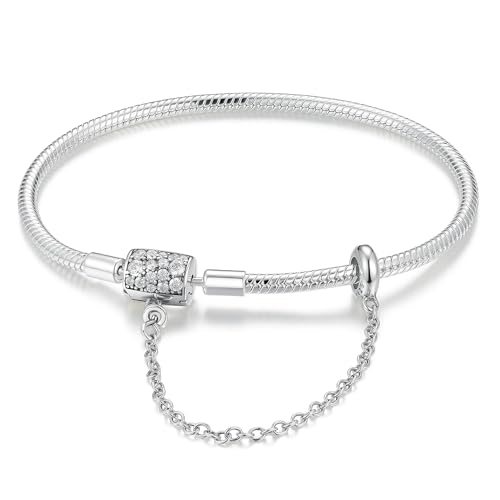 {"about_product": ["Packaging :1x Charm Bracelet, 1x Present a spacing charm, color random, 1x Jewelry packaging bag ,1 jewellery cleaning cloth", "Friendship Reminder:Suggests Select correct bracelet size = Your wrist size + 1 cm/1.5 cm. Wrap a tape measure tightly around the widest part of your wrist and add 1 or 1.5 cm to the measurement. Next, find the closest bracelet size. The extra 1 or 1.5cm are for adding charms to your bracelet in the future, as the snake chain bracelet will become tighter as you add charms", "Size:The bracelet is 3mm in diameter and can be worn through most American bead charms and European charms and is also perfect for Pandora charms", "Great gift for her:This bracelet is wonderful as a beautiful, sentimental gift for a loved one (wife, daughter, granddaughter, sister, friend, etc)", "Customer Service: If you have any questions, please feel free to contact us!"], "product_description": "Phenomenon of chromatic aberration \nSince jewellery is affected by camera equipment, light, environment and shooting angle, there may be slight differences between the colour of the actual product and the picture. \nPlease refer to the actual product to know the specific colour. \nCare of the jewellery \na. Clean with a damp cloth. Then wipe with a soft, dry cotton cloth to restore the lustre. \nb. Store in a bag or a soft cloth strip, avoiding rubbing against other jewellery. \nc. Avoid contact with acidic, alkaline and corrosive substances. \nd. Take it off when swimming, showering or doing other activities involving water. \ne. Avoid knocks so as not to scratch the surface. \nNote: The product may appear larger in the picture than in reality.", "product_information": {"ASIN": "B0BYH9FQMV", "Department": "womens", "Customer Reviews": "4.2 4.2 out of 5 stars \n\n (974)", "Product Warranty": "For warranty information about this product, please click here", "Best Sellers Rank": "#45,925 in Clothing, Shoes & Jewelry (See Top 100 in Clothing, Shoes & Jewelry) #12 in Women's Snake Charm Bracelets", "Date First Available": "March 14, 2023"}, "product_details": {"Gem type": "Cubic Zirconia", "Material": "Sterling Silver", "Chain type": "Snake Chain", "Metal type": "Sterling Silver"}}