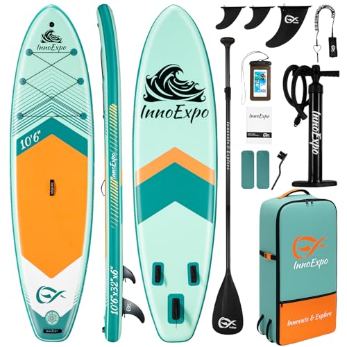 {"about_product": ["➢『Exceptional Durability and Stability』Our paddle board is a premium option used for solo paddling, yoga, or bringing pets. Crafted with dual-layer PVC, it is 35% lighter than similar models while maintaining exceptional durability. Its extra-wide design (10'6'' x 32'' x 6'') and 350 lbs weight capacity are capable of supporting users of all skill levels, causing an effortless and stable experience, even in challenging water conditions.", "➢『Premium Accessories for a Complete Experience』This paddle board is a comprehensive package that includes everything you need used for a hassle-free water adventure: an adjustable aluminum paddle, high-pressure pump, travel backpack, safety coil leash, waterproof phone bag, three removable fins, and a repair kit. With 7 integrated D-rings, it’s capable of accommodating a kayak seat, securing a cooler, or connecting with other boards, which causes greater versatility for your water activities.", "➢『Designed for Comfort and Traction』The anti-slip EVA deck is a thoughtful feature designed to provide a secure grip and reduce fatigue, making it ideal for use in yoga, fishing, surfing, and exploring in various water environments. Its comfortable surface is capable of ensuring stability for extended use, causing increased confidence and safety, no matter your skill level.", "➢『Unmatched Customer Support and Warranty』Our paddle board is a trusted choice backed by exceptional customer service. It comes with a 3-year warranty for the board and a 1-year warranty for accessories, which makes it capable of addressing any potential issues effectively. A 30-day hassle-free return policy causes peace of mind for users, knowing that support is always available used for ensuring a worry-free experience.", "➢『Lightweight and Travel-Friendly』At just 17.5 lbs, this inflatable paddle board is a travel-friendly solution for adventurers. It is used for easy transport and storage, thanks to its included travel backpack and double carrying handles. Detachable fins are capable of simplifying setup and making transportation hassle-free, causing you to focus entirely on enjoying your time on the water.", "➢『Versatile for Every Occasion』This paddle board is a multipurpose tool designed for oceans, lakes, and rivers. It is used for both relaxation and high-energy activities, from casual paddling to rigorous workouts. The robust materials and thoughtful design are capable of adapting to various conditions, causing an unparalleled experience for every water enthusiast."], "product_description": null, "product_information": {"ASIN": "B0DQTF4PCJ", "Size": "10'6x32''x6''", "Color": "Black", "Material": "Ethylene Vinyl Acetate (EVA), Polyvinyl Chloride (PVC)", "Brand Name": "InnoEpxo", "Model Name": "IE01A", "Sport Type": "Paddleboarding, Water Sports", "Item Weight": "17.5 Pounds", "Skill Level": "All Levels", "Manufacturer": "InnoExpo", "Package Weight": "12.47 Kilograms", "Suggested Users": "unisex-adult", "Best Sellers Rank": "#33,891 in Sports & Outdoors (See Top 100 in Sports & Outdoors) #24 in Stand-Up Paddleboards", "Included Components": "1 Paddle Board Pack, 1 Adjustable Paddle, 3 Removable Fins, 1 Manual Pump, 1 SUP Ankel Coiled Leash, 1 Waterproof Phone Bag, 1 Repair Kit, 1 User Manual", "Date First Available": "December 18, 2024", "Warranty Description": "1-year warranty on accessories, 3-year warranty on the board, 30-day hassle-free return policy", "Item Dimensions LxWxH": "127.2 x 32 x 0.04 inches", "Item Package Dimensions L x W x H": "34.5 x 16 x 9 inches"}, "product_details": {"Brand": "InnoEpxo", "Color": "Black", "Sport": "Paddleboarding, Water Sports", "Material": "Ethylene Vinyl Acetate (EVA), Polyvinyl Chloride (PVC)", "Item Weight": "17.5 Pounds"}}