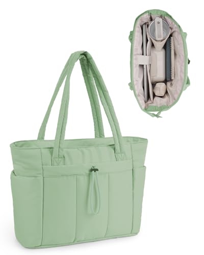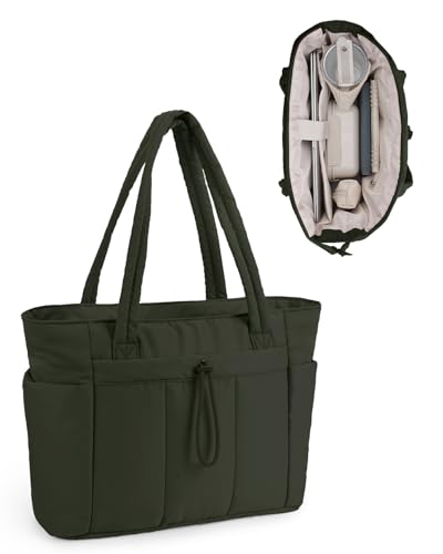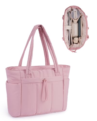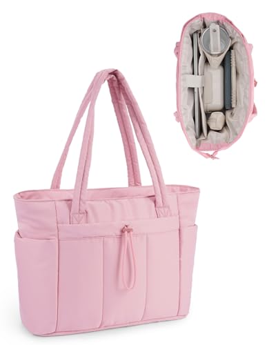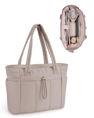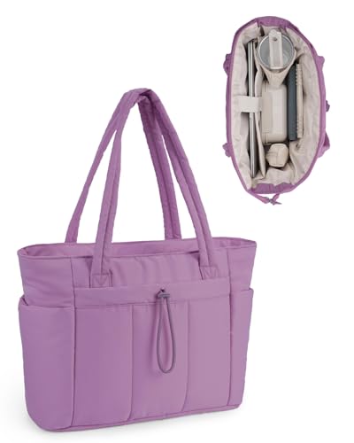 {"about_product": ["【Tumbler-Friendly Design】Designed with an inner elastic pocket to perfectly fit for 40oz tumbler with handle. Keep your tumbler secure and easily accessible, whether you’re traveling, working out, or running errands. No more taking up extra space in your tote—stay hydrated with ease!", "【Spacious and Practical】With a roomy 20L capacity (12.2\" x 15.7\" x 6.3\"), this tote bag with zipper easily accommodates your daily essentials, fitness gear, and even work documents. Whether you’re headed to work, the gym, or on a trip, it’s the perfect size for all your needs.", "【Well-Organized Storage】Stay organized with multiple pockets! A large main compartment fits your 15.6\" laptop, A4 folders, and more. Plus, side and front pockets provide quick access to your essentials. Say goodbye to cluttered bags and hello to stylish organization.", "【Easy to Carry】Crafted with ultra-light, durable materials, this bag weighs just 1 lb. Even when packed full, it’s easy to carry all day long—perfect for travel, daily commutes, or just about any occasion without feeling weighed down.", "【Versatile for Every Occasion】This puffer tote bag does it all! Use it as a work tote, gym tote, beach tote, or travel tote. It’s perfect for work, the beach, shopping, and more. No need for multiple bags—this one adapts to your lifestyle, making it a must-have for any occasion."], "product_description": null, "product_information": {"ASIN": "B0DRCHMS6Z", "Department": "Women", "Manufacturer": "Wandering Nature", "Customer Reviews": "4.6 4.6 out of 5 stars \n\n (486)", "Product Warranty": "For warranty information about this product, please click here", "Best Sellers Rank": "#9,695 in Clothing, Shoes & Jewelry (See Top 100 in Clothing, Shoes & Jewelry) #19 in Travel Tote Bags", "Product Dimensions": "12.2 x 15.7 x 6.3 inches; 1.32 Pounds", "Date First Available": "December 24, 2024"}, "product_details": {"Origin": "Imported", "Fabric type": "Puffy Fabric", "Care instructions": "Wipe with Damp Cloth"}}