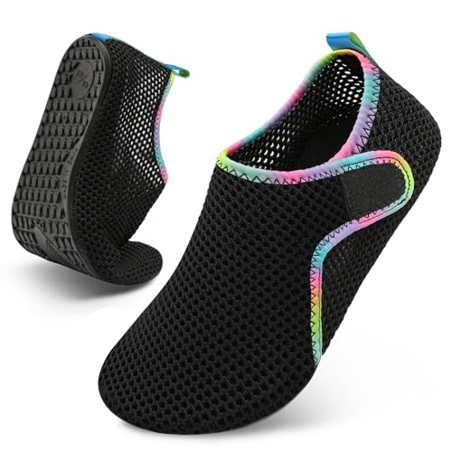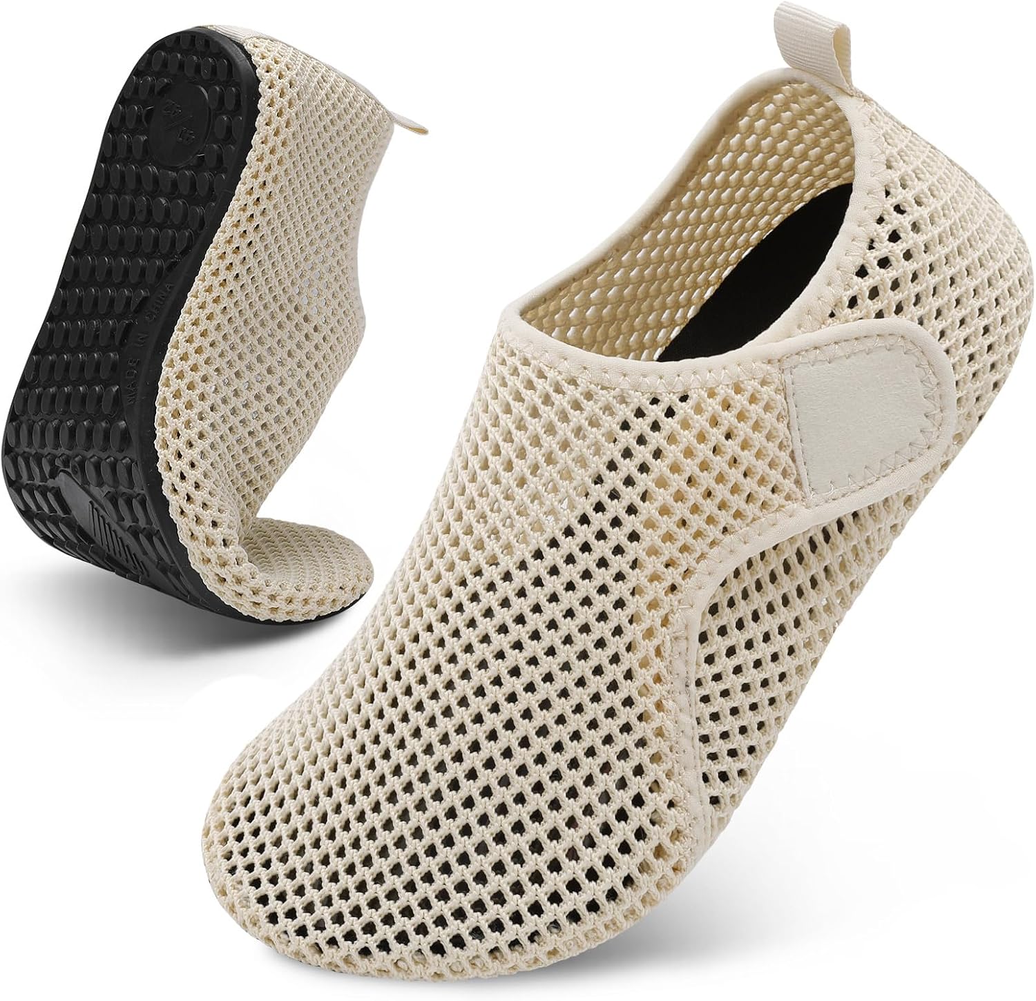 {"about_product": ["〓 Comfy Quick-dry Water Shoes »» High stretchy upper with honeycomb mesh fabric or hollow-out knit fabric gives excellent cross ventilation and quick drying ability. Adjustable straps make sure of a natural fit for you, giving maximum comfort for any kind of water activities", "〓 Lightweight Barefoot Water Socks »» These amazing lightweight 0 pitch water socks make you feel like not wearing anything at all. Slip on and you’re good to explore your passions and enjoy a wonderful holiday time with complete freedom", "〓 Soft Flexible Beach Shoes »» The soft flexible rubber sole with 3D non-slip treads provides excellent grip even in slippery conditions. The zero-drop non-elevated sole offers better ground feedback, enhancing your enjoyment for walking over rocks, sand, tree branches, gravel trails, etc", "〓 Convenient Wide Sandals Slippers »» Comfortable wide toe design allows your toes to relax and spread out naturally without squeezing. Adjustable hook and loop design meets the needs of different foot types. Soft enough to easy pack up, making it convenient for any indoor and outdoor activities", "〓 Great for Water Sports & Casual Wear »» These slipper socks for women men are perfect for indoor and outdoor activities, such as swimming, surfing, diving, kayaking, water aerobics, beach, yoga, jogging, fishing, walking dogs, washing cars, boating, camping, showering, gardening, etc. Nice Choice for beach, Pool, river, lake, cruise ship, and around the house"], "product_description": null, "product_information": {"ASIN": "B0CS93P5B8", "Department": "unisex-adult", "Customer Reviews": "4.3 4.3 out of 5 stars \n\n (1,729)", "Product Warranty": "For warranty information about this product, please click here", "Best Sellers Rank": "#49,045 in Clothing, Shoes & Jewelry (See Top 100 in Clothing, Shoes & Jewelry) #53 in Women's Water Shoes", "Date First Available": "January 11, 2024"}, "product_details": {"Closure type": "Hook & Loop", "Sole material": "Rubber", "Inner material": "Breathable Mesh", "Outer material": "High-quality Stretchy Fabric"}}