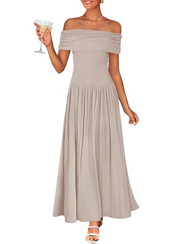{"about_product": ["S=(US 4-6), M=(US 8-10), L=(US 12-14), XLarg=(US 16-18); The summer maxi dresses for women is made of soft, stretchy, breathablefabric.Pleats will disappear during transportation, and it is recommended that the effect is better after ironing", "Off the shoulder dress, sleeveless dress,slim fit dress,maxi dress, solid color dress,backless dress, pleated swing flowy dress, simple and chic design. Ideal outfits for your holiday or vacation.", "The off-the-shoulder design of this dress is chic and stylish, great for showing off your shoulders and neck. The sleeveless design is great for sunny days, allowing you to stay cool and comfortable. The dress has a flattering swing silhouette, which is great for keeping you comfortable and stylish.", "Stylish and casual design, effortlessly transitions from casual to formal, such as casual, home, travel, holiday, weeding guest, vacation, office, semi-formal, work, graduation, club, night out, cocktail, party, date, dailywear, etc. Our dress is great for women looking for a casual yet stylish outfit that is comfortable and chic.", "WASH CARE: Hand wash with cold water recommended; Machine wash recommended in a laundry bag; Wash with similar colors; Do not bleach, hang or line to dry."], "product_description": null, "product_information": {"ASIN": "B0F3XPC77R", "Department": "womens", "Customer Reviews": "3.6 3.6 out of 5 stars \n\n (338)", "Product Warranty": "For warranty information about this product, please click here", "Best Sellers Rank": "#73,828 in Clothing, Shoes & Jewelry (See Top 100 in Clothing, Shoes & Jewelry) #204 in Women's Formal Dresses #656 in Women's Casual Dresses", "Product Dimensions": "1.97 x 0.79 x 0.39 inches; 3.53 ounces", "Date First Available": "December 19, 2024"}, "product_details": {"Origin": "Imported", "Fabric type": "92%Viscose, 8%Spandex", "Closure type": "Pull On", "Care instructions": "Machine Wash"}}