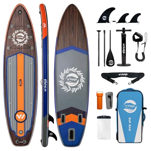 {"about_product": ["【Customer Support】: Dedicated support team provides step-by-step assistance for setup and maintenance; quick troubleshooting guidance for leaks or valve issues; hassle-free experience with lifetime technical advice", "【Durable Material】: Military-grade double-layered PVC construction ensures impact-resistant performance in fast rivers or calm lakes; no cracking or leaking for long-lasting use", "【Enhanced Stability】: 430-pound weight capacity supports 2+1 family with anti-slip EVA deck padding; ideal for beginners to master balance and advanced maneuvers safely", "【Convenient Features】: Built-in camera mount securely holds devices for hands-free recording; front bungee system organizes gear like water bottles or dry bags; quick-access storage enhances adventure comfort", "【Lightweight Portability】: Weighs only 19.6 lbs with dual handles and padded shoulder strap; deflates quickly; all accessories fit into the backpack; compact storage design for hassle-free travel", "【Full SUP Kit】: Includes high-pressure hand pump; 3-piece adjustable paddle; 3 removable fins for speed control; 1 shoulder strap; 1 ankle leash; waterproof phone bag; repair kit; travel backpack—ready to use out of the box"], "product_description": null, "product_information": {"UPC": "718550755829", "ASIN": "B0DR2NWLX4", "Brand Name": "WNOVA", "Model Name": "A49-023", "Skill Level": "All", "Manufacturer": "WNOVA", "Item Thickness": "6 Inches", "Package Weight": "13.63 Kilograms", "Suggested Users": "unisex-adult", "Best Sellers Rank": "#91,230 in Sports & Outdoors (See Top 100 in Sports & Outdoors) #66 in Stand-Up Paddleboards", "Included Components": "3 Removable Fins, 3-Piece Adjustable Floating Paddle, Hand Pump, Safe Ankle Leash, Shoulder Strap", "Date First Available": "December 20, 2024", "Warranty Description": "We provide 1-year manufacturer warranty and unlimited customer service.", "Item Dimensions LxWxH": "132 x 34 x 0.1 inches", "Maximum Weight Recommendation": "430 Pounds", "Item Package Dimensions L x W x H": "36 x 15.5 x 8 inches", "EU Spare Part Availability Duration": "1 Years"}, "product_details": {"Brand": "WNOVA", "Color": "Deep Wood Grain 11'x34"", "Sport": "Paddleboarding", "Material": "Polyvinyl Chloride (PVC)", "Product Dimensions": "132"L x 34"W"}}
