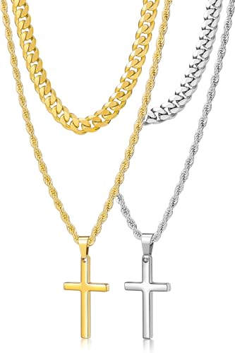{"about_product": ["Four-Piece Set: Our men's stainless steel necklace set offers 4 necklaces;two colors: black and silver,say goodbye to choosing anxiety", "Material:The men's cross necklace is made of 316L stainless steel, lead free, hypoallergenic, waterproof. High polishing process, smooth edge, make it more comfortable to wear", "Size: This elegant two-piece cross necklace features an 18-inch chain with a 20-inch cross pendant necklace, with the cross measuring 1.2 by 0.7 inches. It weighs 100 grams", "Layered Cross Necklace:4Pcs Layered necklace. Designed with a combination of strong welded lobster clasp and chain, which is durable, not easy to break when pulled,great for wearing alone or layering with other dainty necklaces", "Perfect Gift: The cross necklace comes with an exquisite gift box, perfect as a Valentine's Day, Father's Day, Christmas, Thanksgiving Day gift for your important Important people"], "product_description": null, "product_information": {"ASIN": "B0DRCL59X7", "Department": "mens", "Manufacturer": "ROMASS", "Customer Reviews": "4.6 4.6 out of 5 stars \n\n (235)", "Product Warranty": "For warranty information about this product, please click here", "Best Sellers Rank": "#4,503 in Clothing, Shoes & Jewelry (See Top 100 in Clothing, Shoes & Jewelry) #19 in Men's Necklaces", "Date First Available": "December 24, 2024"}, "product_details": {"Gem type": "No Gemstone", "Material": "Stainless Steel", "Chain type": "French Rope, Curb", "Clasp type": "Lobster", "Metal type": "Stainless Steel", "Metal weight": "3.52 ounces"}}