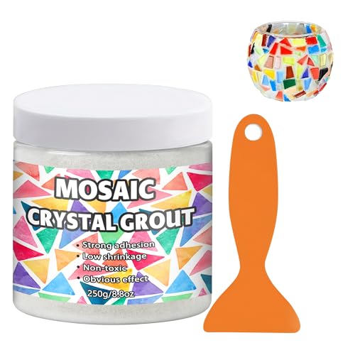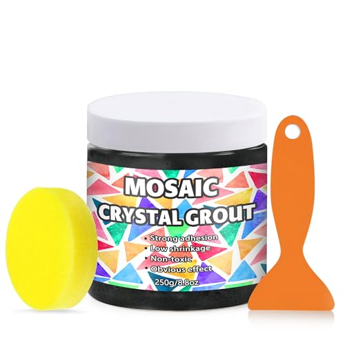 {"about_product": ["Awakening the Artistic Soul of Detail: This revolutionary mosaic tile crystal grout is designed to fill the gaps between mosaic tiles while also being perfect for other crafts. With its transparent, shimmering crystals, it fills every crevice, allowing each piece to shine with the brilliance of a true masterpiece", "Advanced, Gentle Formula: This grout dries to create a sand-like texture. It is fast-drying, and waterproof, making it safe and effective on a wide range of surfaces. Whether you’re a DIY enthusiast or a professional, this grout provides a reliable solution for your mosaic tile gaps", "Perfect for DIY Projects: Mosaic grout is an essential tool for repairing gaps in mosaic tiles— the finishing touch to your handcrafted art. This mosaic gap repair kit features fine crystal particles and exceptional adhesion, transforming tile gaps into seamless artistic lines! Use our mosaic grout repair kit in your DIY projects and achieve professional-quality results.", "Simple, Hassle-Free Application: Created with DIY enthusiasts in mind, our grout is easy to use: 1. Ensure surfaces are dry, 2. Twist off the cap and apply with the scraper, 3. Fill the gaps with grout and smooth it out, 4. Use wet wipes to clean the surface of the mosaic tiles and remove any adhesive residue, 5. Let it dry for 24 Hours, Enjoy effortless application and flawless results every time", "Satisfaction Guaranteed: We’re confident you’ll love our mosaic crystal grout. If for any reason you’re not happy with our Mosaic Crystal Grout or have any issues using, please don’t hesitate to reach out for assistance. PS: Be sure to clean any excess grout from the edges right away to prevent it from drying. After use, tightly seal the cap to avoid hardening. In damp areas, allow the grout to dry for 24 hours."], "product_description": null, "product_information": {"ASIN": "B0DRNFQTMY", "Manufacturer": "OOTDART", "Customer Reviews": "4.1 4.1 out of 5 stars \n\n (56)", "Best Sellers Rank": "#32,452 in Tools & Home Improvement (See Top 100 in Tools & Home Improvement) #31 in Tile Grout", "Item model number": "4.5 oz", "Package Dimensions": "10.98 x 5.04 x 2.13 inches; 7.76 ounces", "Date First Available": "December 30, 2024"}, "product_details": {"Brand": "OOTDART", "Style": "Mosaic Crystal", "Material": "Crystal", "Item Form": "Grout", "Water Resistance Level": "Water Resistant"}}