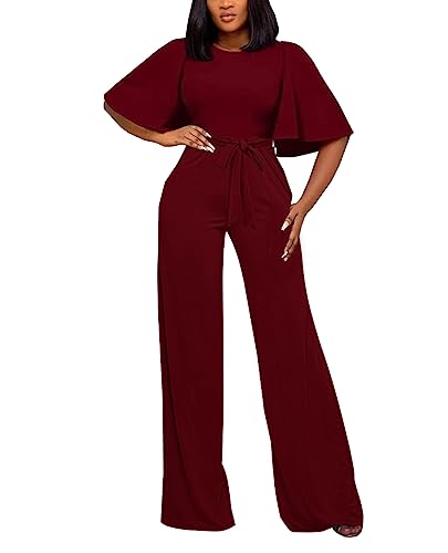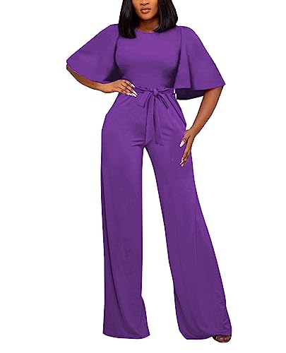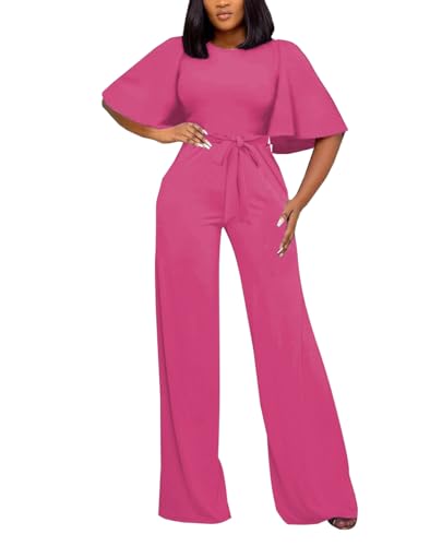 {"about_product": ["Feature:Ruffles short sleeve,Round neck,Solid color,High waist,Long Pants Jumpsuits Romper with Belt.", "Women trendy elegant style and wide leg design makes you more elegant and chic for most occasions.Women trendy elegant style and wide leg design makes you more elegant and chic for most occasions.", "Casual jumpsuit with ruffles sleeves, long romper, short sleeve pantsuit with belts, crew neck pant suits, cocktail jumpsuit, long pants outfit for women.", "Suitable for evening party, night club, wedding, cocktail, dinner or work wear daily wear, prom, homecoming, casual, going out,Vacation,Beach and ect.", "This casual jumpsuit not only trendy surface,the soft materail will bring you with the comfortable touch feeling,maybe you will like to wear it for long time,just for enjoying the feeling."], "product_description": null, "product_information": {"ASIN": "B0F6B571NB", "Department": "Women", "Customer Reviews": "4.3 4.3 out of 5 stars \n\n (449)", "Best Sellers Rank": "#16,733 in Clothing, Shoes & Jewelry (See Top 100 in Clothing, Shoes & Jewelry) #26 in Women's Jumpsuits", "Date First Available": "April 25, 2025"}, "product_details": {"Origin": "Imported", "Fabric type": "Material: Polyester and Spandex, Stretchy and Soft lightweight, Slim fit.", "Closure type": "Zipper", "Care instructions": "Machine Wash"}}