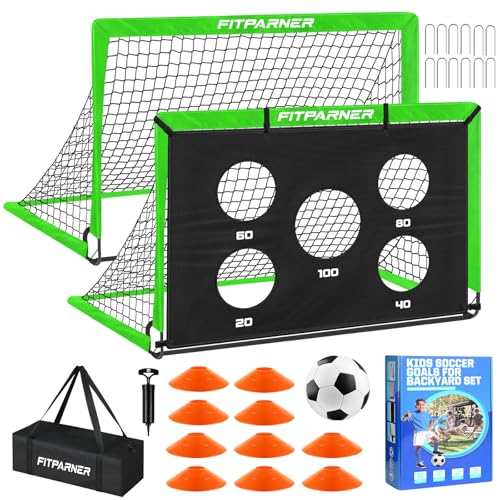 {"about_product": ["Foldable and portable soccer goals for backyard: Our small soccer goals are designed for compact spaces, making them perfect for backyard play. The foldable and portable design allows for easy movement and storage. Simply fold them down and store them in the included carrying bag for convenient transportation and quick setup for your next game.", "Quality and durability above all: 2 set of 4' x 3' soccer goals is made of 450D thickened oxford cloth and high-elastic fibreglass poles, with good toughness, wear resistance, and resilience, able to withstand prolonged use without being easily worn or damaged. can withstand the pressure exerted by the kids when they kick the ball, keeping the football frame stable and ensuring safety and reliability during games or training.", "Easy installation and portability: Setting up our soccer ball net is a breeze with clear instructions and detailed installation guidance provided in our manual. Once assembled, there's no need to dismantle it—simply fold it to an isosceles triangle and stow it in the portable bag. When you're ready to play again, unfold it and kick off without the hassle of repeated installations.", "Complete soccer goal set: Our comprehensive toddler soccer goals include two 4x3 ft soccer goals, a detachable scoring target cloth, a soccer goal portable bag, a standard size 3 soccer ball, an upgraded needle-inflated pump, and 10 training cones,8 soccer goal U-shaped metal ground stakes. Everything you need for an exciting and productive soccer training equipment is included in this set.", "With target cloth for soccer practice:This soccer set is equipped with a detachable target cloth,Featuring 5 scoring target zones to keep soccer drills fresh, enables kids to complete soccer training alone, develop shooting skills even without a goalkeeper.Perfect for fostering a love for soccer game and developing essential soccer skills in young players.", "Soccer gift for all ages: Our versatile soccer nets are a great birthday, Thanksgiving, Christmas gifts for kids of all ages, boys, and girls from toddlers to teenagers, including kids age 3-5, 4-6, 4-8, 6-8, 7-10, 8-10, 8-12, 10-12, and 12-14, this kids soccer ball set caters to a wide range of young players. Versatile for use in diverse locations such as indoors, outdoors sites, parks, backyards, soccer fields, community, gymnasiums, school playgrounds, and beaches.", "Brand support: When you opt for our youth soccer goal and encounter any issues during use or require replacement parts, please contact us via your Amazon order detail page (Go to Your Orders > Problem with order > Contact Seller). We commit to responding to your email within 24 hours and addressing your concerns promptly."], "product_description": "Designed for young athletes and soccer enthusiasts, this versatile soccer goal set includes a target net with multiple scoring zones, making it ideal for improving shooting accuracy, ball control, and overall technique. The scoring target cloth allow players to aim and practice their shots with precision, turning each session into an exciting challenge. This complete soccer set also comes with training cones, a soccer ball, and an air pump, providing everything needed for engaging and effective training. Whether you're practicing at home or taking it to the field, the portable and lightweight design ensures easy setup and transportation. The durable construction guarantees long-lasting use, so your young player can continue honing their skills for years to come. Perfectly sized for kids aged 3 to 14 - This soccer goals set is ideal for a wide range of age groups including 3-5, 4-6, 6-8, 8-12, and 10-14-year-olds. The target design on the goal adds an exciting challenge for players of any skill level, helping them aim and score while making the game even more engaging. As children practice their shots, they’re also developing valuable coordination, focus, and teamwork—skills that extend beyond the soccer field. Lightweight, portable, and easy to set up - This soccer goal is ideal for backyard fun, parks, or even picnics. It’s a great way to bond with your child while enjoying the outdoors and creating lasting memories. With everything you need in one set—including the soccer ball, training cones, and pump—this is the ultimate outdoor activity for family fun and active play.", "product_information": {"UPC": "762949290484", "ASIN": "B0DRYM1QVW", "Brand": "FITPARNER", "Color": "Black", "Style": "4x3FT", "Material": "Cloth & Steel", "Brand Name": "FITPARNER", "Model Name": "Soccer Goal", "Sport Type": "Kids Soccer, Soccer, Soccer Nets, Teen Soccer, Soccer Game", "Manufacturer": "FITPARNER", "Frame Material": "Lightweight Fiberglass and Steel", "Package Weight": "3.11 Kilograms", "Best Sellers Rank": "#2,210 in Sports & Outdoors (See Top 100 in Sports & Outdoors) #14 in Soccer Goals", "Product Dimensions": "37.1\"D x 37.1\"W x 48\"H", "Date First Available": "December 31, 2024", "Warranty Description": "not_applicable", "Item Dimensions LxWxH": "37.1 x 37.1 x 48 inches", "Item Package Dimensions L x W x H": "17.44 x 11.5 x 4.49 inches"}, "product_details": {"Brand": "FITPARNER", "Color": "Black", "Material": "Cloth & Steel", "Frame Material": "Lightweight Fiberglass and Steel", "Product Dimensions": "37.1"D x 37.1"W x 48"H"}}