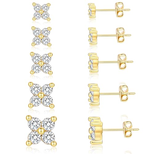 {"about_product": ["Exquisite 14K Gold Plating: Crafted with care, our earrings feature luxurious 14K yellow gold plating. Hypoallergenic and designed with double slotted ear posts, they offer exceptional comfort and security, making them perfect for even the most sensitive skin types.", "Brilliant AAA+ Cubic Zirconia: Each earring is adorned with high-quality AAA+ cubic zirconia that sparkles beautifully, effortlessly complementing your unique style and ensuring you shine in any crowd.", "Versatile 5-Pair Set: This set includes five pairs of stunning stud earrings in sizes 3mm, 4mm, 5mm, 6mm, and 7mm, allowing you to mix and match for any occasion. The secure butterfly clasp adds an extra layer of protection, ensuring your earrings stay in place.", "Thoughtful Gift Idea: With a design that highlights the beauty of diamonds from every angle, these elegant earrings are perfect for any event. Each pair is individually packaged in a charming Independent bag packaging bag, making them an ideal gift for birthdays, holidays, or special moments."], "product_description": null, "product_information": {"ASIN": "B0DS21DZTS", "Department": "womens", "Customer Reviews": "4.5 4.5 out of 5 stars \n\n (827)", "Product Warranty": "For warranty information about this product, please click here", "Best Sellers Rank": "#4,442 in Clothing, Shoes & Jewelry (See Top 100 in Clothing, Shoes & Jewelry) #21 in Women's Stud Earrings", "Package Dimensions": "5.9 x 5.31 x 0.39 inches; 0.96 ounces", "Date First Available": "January 2, 2025"}, "product_details": {"Gem type": "No Gemstone", "Material": "Brass", "Metal type": "Brass", "Back Finding": "Push Back", "Earring design": "Stud", "Item type name": "Earring"}}
