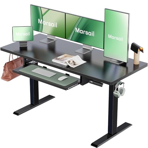 {"about_product": ["Flexible Height Adjustment: Easily switch between sitting and standing heights with this adjustable standing desk from Marsail. The stand up desk offers a seamless 27.5″-46.7″ height range to ensure a comfortable and ergonomic experience for any workspace setup.", "Ergonomic Keyboard Tray: The standing desk with keyboard tray is designed for smooth operation with larger track side panels that can support up to 22 lbs. The ergonomic desk with keyboard tray helps to promote proper typing posture and to avoid wrist strain for lasting comfort.", "4 Memory Height Presets: The adjustable height desk features a user-friendly control panel with four programmable preset buttons, allowing you to transition between your favorite height settings throughout the day. Switch from sitting desk to stand up desk with just one button press.", "Smooth and Quiet Lifting: Equipped with a powerful motor, this adjustable desk lifts smoothly without shake or wobble to ensure stability for up to 110 lbs. The adjustable height desk operates at a quiet 55 dB noise level, making it ideal for both home and office environments.", "Spacious Desktop: The wide 47.24″ x 23.62″ tabletop provides ample space to store multiple monitors and accessories directly on the standing desk. Included cable management clips and storage hooks allow you to keep your electric standing desk organized and clutter-free."], "product_description": null, "product_information": {"UPC": "840478803396", "ASIN": "B0DSBFMWBP", "Base": "Alloy Steel", "Size": "48x24\"", "Color": "Rustic Brown", "Shape": "Rectangular", "Base Type": "Leg", "Room Type": "Office", "Top Color": "Rustic Brown", "Base Color": "Rustic Brown", "Brand Name": "Marsail", "Model Name": "standing desk", "Style Name": "Modern", "Desk Design": "Computer Desk", "Item Height": "23.62 inches", "Item Weight": "44.8 Pounds", "Finish Types": "Painted", "Manufacturer": "Marsail", "Model Number": "TZESD14V-N1", "Mounting Type": "Freestanding", "Product Grade": "New", "Warranty Type": "Limited", "Item Type Name": "electric standing desk", "Maximum Height": "46.7 Inches", "Minimum Height": "27.5 Inches", "Furniture Finish": "Painted", "Is Customizable?": "No", "Best Sellers Rank": "#10,615 in Office Products (See Top 100 in Office Products) #26 in Computer Workstations", "Lifting Mechanism": "Electric", "Required Assembly": "Yes", "Top Material Type": "Engineered Wood", "Additional Features": "Electric", "Included Components": "Keyboard Tray", "Item Dimensions D x W x H": "47.24\"D x 27.56\"W x 23.62\"H", "Number of Height Positions": "4", "Includes All Assembly Tools": "No", "Recommended Uses For Product": "Working", "Maximum Weight Recommendation": "1.1E+2 Pounds", "Working Surface Diagonal Length": "53.04 Inches"}, "product_details": {"Brand": "Marsail", "Color": "Rustic Brown", "Shape": "Rectangular", "Style": "Modern", "Desk design": "Computer Desk", "Finish Type": "Painted", "Base Material": "Alloy Steel", "Special Feature": "Electric", "Top Material Type": "Engineered Wood", "Product Dimensions": "47.24"D x 27.56"W x 23.62"H"}}