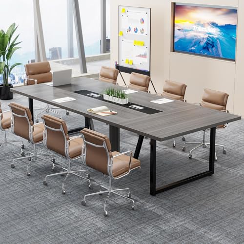 {"about_product": ["[10 PEOPLE CONFERENCE TABLE]: Overall size: 94.49 L x 47.24 W x 29.53 H inches. Super large size makes this conference table comfortably seat 8-10 people. The spacious room under the table will help you stretch your legs after a long time sitting.", "[SUPER STURDY CONSTRUCTION]: Constructed with thick E1 particle board and 1.57\" * 1.57\" heavy-duty powder-coated metal frame, this large conference room table is super sturdy, strong, and has a large weight capacity. With waterproof melamine finish, the table top is also scratch resistant, and easy to clean. No problem for long-time use.", "[GROMMET HOLES & ADJUSTABLE FOOT PADS]: Two grommet holes on the large tabletop make it easy to manage your various cables, effectively keeping your office desktop clean and organized. Adjustable foot pads keep the meeting table stable even on uneven floors or carpets.", "[BUSINESS STYLE OFFICE FURNITURE]: Classic all black shows a sleek business style, which will definitely match your office conference room style. Because of the simple long and wide design, this business furniture is also a good choice for a long office table, meeting table, podcast table, seminar table, boardroom table, training table and so on.", "[EASY ASSEMBLY]: It is easy to assemble this large rectangle conference table. Recommend 2 people to do it together because the table boards and metal frames are heavy. All labeled pieces and tools are included, please strictly follow the directions and it will be finished within 1 hour."], "product_description": null, "product_information": {"ASIN": "B0DSP9PLJS", "Material": "Engineered Wood", "Item Weight": "125 pounds", "Manufacturer": "Tribesigns", "Special Feature": "Heavy-Duty", "Best Sellers Rank": "#32,587 in Office Products (See Top 100 in Office Products) #1 in Conference Room Tables", "Item model number": "BLACK-CT", "Product Dimensions": "47.24 x 94.49 x 29.53 inches", "Date First Available": "January 10, 2025", "Assembly Instructions Description": "Easy to assemble with clear instructions. Recommended 2 people due to heavy components. All necessary tools and labeled pieces included. Assembly time approximately 1 hour."}, "product_details": {"Size": "94.49 inches x 47.24 inches x 29.53 inches", "Brand": "Tribesigns", "Color": "Classic Black", "Style": "Industrial", "Item Weight": "125 Pounds"}}