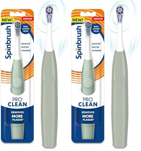 {"about_product": ["One New & Improved Spinbrush PRO CLEAN toothbrush handle with one replaceable brush head; two AA batteries included", "Removes 70% more plaque than a manual toothbrush in hard-to-reach places", "Brush head spins 50% faster than a previous model of adult Spinbrush", "Designed with a thinner handle for improved grip and now quieter than ever; enjoy the pleasant sound of Spinbrush polishing your pearly whites", "Soft switch power buttons are easier to turn on/off and help prevent water from leaking inside the toothbrush"], "product_description": "Kiss plaque goodbye when you brush with the New & Improved Spinbrush PRO CLEAN Powered Toothbrush! The brush head spins 50% faster than the previous model of adult Spinbrush and removes 70% more plaque vs. a manual toothbrush in hard-to-reach places. Other sleek design updates include a quieter experience and thinner handle than the previous model. Color-Wear soft bristles fade over time to help remind you when it's time to replace the electric brush head. This cleaning battery toothbrush includes two (2) replaceable AA batteries. Keep your handle to save money and plastic with Spinbrush brand refill packs! This Spinbrush battery-powered travel electric toothbrush is not tested on animals. It's time to replace your disposable toothbrush and Spin your way to a spotless smile!", "product_information": {"ASIN": "B0DSQYJTNT", "Batteries": "2 AA batteries required. (included)", "Manufacturer": "Church & Dwight", "Customer Reviews": "4.2 4.2 out of 5 stars \n\n (10,621)", "Best Sellers Rank": "#726 in Health & Household (See Top 100 in Health & Household) #8 in Power Toothbrushes", "Item model number": "766878400006", "Product Dimensions": "2.5 x 1.25 x 10.2 inches; 4.59 ounces", "Date First Available": "January 10, 2024"}, "product_details": {"Brand": "Spinbrush", "Power Source": "Battery Powered", "Special Feature": "Sonic", "Age Range (Description)": "Adult", "Item Firmness Description": "Soft"}}