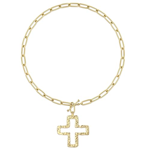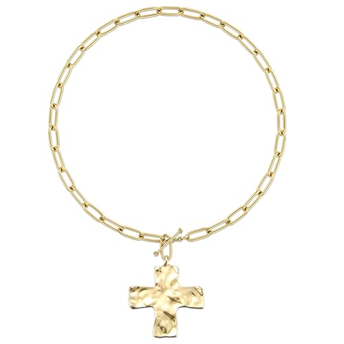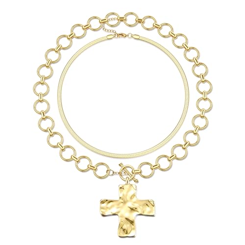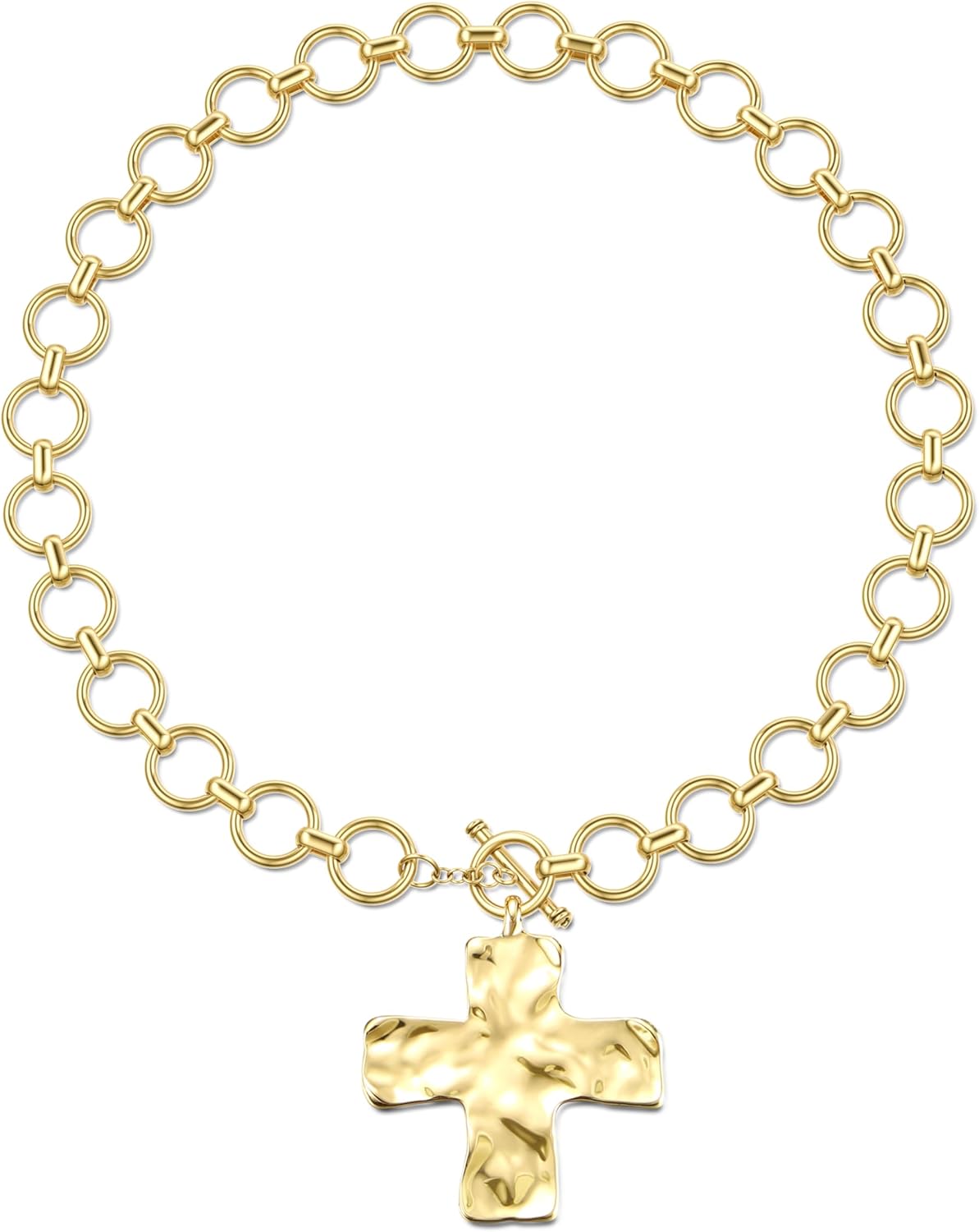 {"about_product": ["Non Tarnish Gold Cross Necklace for Women: Don't worry about having to toss chunky cross necklace after a few wears or staining your clothes or neck due to tarnishing. Our chunky layered necklace set is crafted with latest eco - friendly electrophoretic coating which forms a protective barrier against oxidation. Our gold cross choker necklace are lead-free, nickel-free, hypoallergenic, waterproof, suitbable for all-day wear.", "Gold Chunky Cross Choker Necklace: This stylish cross pendant necklace for women features 1 thick gold chain link necklace(16.93''Length*0.5‘’Width) , 1 bold hammered gold cross pendant(1.61''Height*1.61''W), 1 effortless toggle clasp. Wearing this distinctive chunky silver cross necklace, you'll shine like the brightest star in the crowd.", "Durable Chunky Gold Cross Necklace: Crafted with robust brass materials, our thick cross necklace for women trendy features sturdy paper clip link chain designed to resist deformation and maintain their shape. Don't worry about breaking during transportation or after wearing our gold chunky paperclip chain necklace, they are very sturdy and durable.", "Exquisite Packaging & Ideal Gift: This cross choker necklace with cross comes with 1 exquisite gift box, 1 polishing cloth, a perfect gift for many occasions like Christmas Day, Birthday, Valentine's Day, Mother's Day, Graduation, Wedding, Anniversary, Engagement in life, just gift this gold chunky cross necklace to your loved ones.", "100% Customer Satisfaction: At Ten Miro, we believe you deserve the royal treatment. Our chunky cross necklace for women is committed to being your trusted embellishment for all your glamorous moments. Do not hesitate to contact us for any product issues,we'll provide a satisfactory response within 24 hours."], "product_description": "TEN MIRO 18k Chunky Gold Necklace for Women Sweatproof, Non Tarnish Chunky Layered Chain Necklaces Thick Gold Layering Herringbone Paperclip Necklace Stacks Toggle Necklaces for Women Men", "product_information": {"ASIN": "B0FGXPHDR4", "Department": "womens", "Customer Reviews": "4.5 4.5 out of 5 stars \n\n (177)", "Product Warranty": "For warranty information about this product, please click here", "Best Sellers Rank": "#31,182 in Clothing, Shoes & Jewelry (See Top 100 in Clothing, Shoes & Jewelry) #370 in Women's Pendant Necklaces", "Date First Available": "July 7, 2025"}, "product_details": {"Gem type": "No Gemstone", "Material": "Brass", "Chain type": "C-Link", "Clasp type": "Toggle", "Metal type": "Brass", "Item type name": "Necklace"}}
