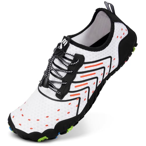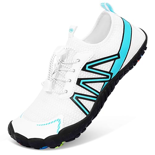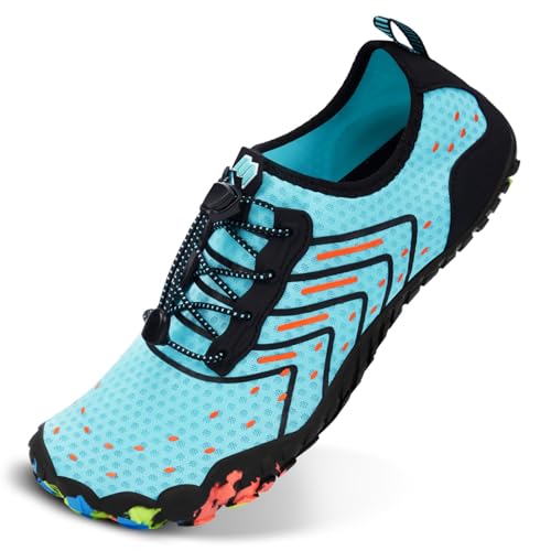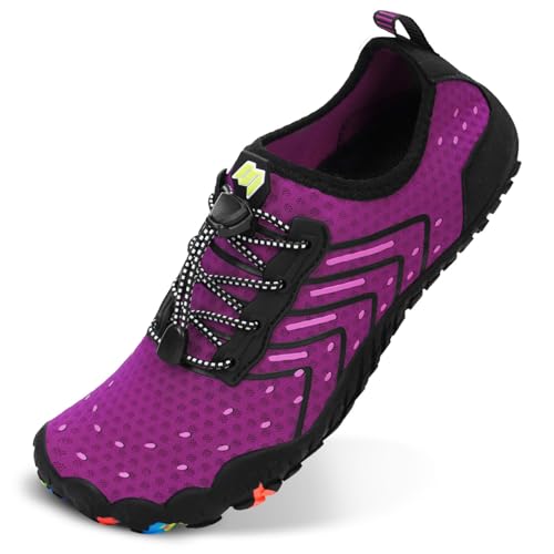 {"about_product": ["BREATHABLE UPPER: These Water Shoes for Women and Men are engineered with breathable Lycra fabric and air layer, ensuring your feet stay cool and dry even in extreme heat. Their ultra-thin uppers make them ideal for beach outings, water sports, and poolside relaxation, delivering a second-skin fit for all-day comfort.", "QUICK-DRY DRAINAGE HOLES: HiGropcore Water Shoes feature strategically placed drainage holes in the sole that rapidly expel water during surfing, kayaking, or swimming. This innovative design keeps feet dry, enhances traction, and reduces slipping in wet environments.", "WIDE TOE BOX & ANTI-COLLISION: These Water Shoes Women Men are designed with a spacious toe box for natural toe splay and reinforced anti-collision bumpers around the front. Whether hiking rugged trails or navigating slippery rocks, these swim beach shoes protect your feet from impacts.", "LIGHTWEIGHT & NON-SLIP: HiGropcore Aqua Shoes weigh 20% less than traditional water shoes, thanks to a premium non-slip rubber outsole. Durable yet packable, they are designed for travel, hike, and long-term adventures while offering effortless portability without sacrificing performance.", "FLEXIBLE & ZERO DROP: These Barefoot Water Shoes combine foldable sole technology with a zero-drop platform, promoting natural foot movement and reducing fatigue. Perfect for swim, beach, yoga, or daily wear, they provide natural foot support while maintaining barefoot-like flexibility."], "product_description": null, "product_information": {"ASIN": "B0DY45RJQ1", "Department": "unisex-adult", "Manufacturer": "HiGropcore", "Customer Reviews": "4.6 4.6 out of 5 stars \n\n (316)", "Product Warranty": "For warranty information about this product, please click here", "Best Sellers Rank": "#179,275 in Clothing, Shoes & Jewelry (See Top 100 in Clothing, Shoes & Jewelry) #123 in Women's Water Shoes #125 in Men's Water Shoes", "Item model number": "ZT-01", "Date First Available": "February 22, 2025"}, "product_details": {"Closure type": "Quick-Lace", "Sole material": "Rubber", "Outer material": "Polyester, Spandex", "Water resistance level": "Not Water Resistant"}}