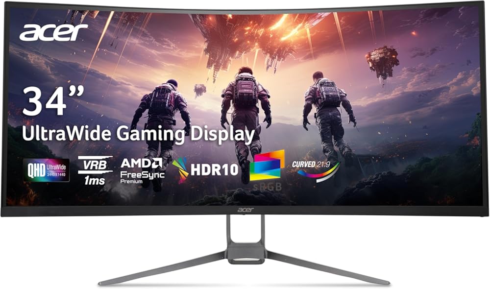 {"about_product": ["Quality Visuals: The Nitro EDA343CUR 34\" Curved Display with QHD (3440 x 1440) resolution offers the sharpest picture quality and provides a perfect picture with a broader view. The zero-frame design does away with the thick frames found on conventional monitors freeing up precious screen space, so you have more to look at from edge to edge.", "AMD FreeSync Premium Technology: Say “goodbye” to stuttering and tearing. With AMD FreeSync Premium, the monitor’s frames are synced with the graphics card’s frames, which eliminates screen tearing and provide the smoothest gaming experience.", "Up to 120Hz Refresh Rate: The 120Hz refresh rate speeds up the frames per second to deliver ultra-smooth 2D scenes. With a rapid refresh rate of up to 120Hz, Acer Monitors shorten the time it takes for frame rendering, lower input lag and provide gamers an excellent in-game experience.", "Responsive!!: Fast response time of 1ms enhanced gamers’ in-game experience. No matter the fast-moving action or any dramatic transitions will be all rendered smoothly without the annoying effects of smearing or ghosting.", "Curved Screen: The 1000R curved 21:9 display wraps you in a world of entertainment with every corner of the screen at the same distance from your eyes for a uniform viewing experience without blind spots. Tilt the screen -5 to 15 degrees for the most comfortable view.", "34\" UWQHD (3440 x 1440) 1000R Curved Widescreen Display | AMD FreeSync Premium Technology", "Refresh Rate: Up to 120Hz | Response Time: 1ms (VRB) | Pixel Pitch: 0.232mm | Color Saturation: sRGB 99%", "VESA mounting compliant (100 x 100mm) | Zero-Frame Design | 2 Speakers, 3 Watts per Speaker | Ergonomic Tilt: -5° to 15° | Ports: 2 x Display Port 1.2 & 2 x HDMI 2.0 Ports (Display Port Cable Included)"], "product_description": "Curved to Perfection: Acer's Nitro EDA343CUR 34\" curved panel monitor with Ultra-Wide QHD resolution delivers the incredible. Through AMD FreeSync Premium technology, the game’s frame rate is determined by your graphics card, not the fixed refresh rate of the monitor, giving you a serious competitive edge. Smooth, tear-free gameplay!! Crisp, true-to-life colors come alive with the amazing 3440 x 1440 resolution, allowing you to enjoy High-Definition entertainment in the comfort of your home. The wide view angle technology lets you share what's on your screen with friends and family as colors stay true no matter what angle you're viewing from. Incredible 100,000,000:1 contrast ratio and rapid response time ensure your games, work and movies are smooth and look as epic as possible. (UM.CE3AA.001)", "product_information": {"ASIN": "B0DT1H7NDS", "Brand": "acer", "Color": "Black", "Series": "Nitro", "Item Weight": "21.5 pounds", "Manufacturer": "Acer", "Best Sellers Rank": "#2,151 in Electronics (See Top 100 in Electronics) #80 in Computer Monitors", "Item model number": "EDA343CUR J0bmiippx", "Screen Resolution": "3440x1440", "Product Dimensions": "9.13 x 31.77 x 18.74 inches", "Date First Available": "December 19, 2024", "Max Screen Resolution": "3440 x 1440", "Item Dimensions LxWxH": "9.13 x 31.77 x 18.74 inches", "Standing screen display size": "34 Inches"}, "product_details": {"Brand": "acer", "Resolution": "QHD Ultra Wide 1440p", "Screen Size": "34 Inches", "Aspect Ratio": "21:9", "Screen Surface Description": "Matte"}}