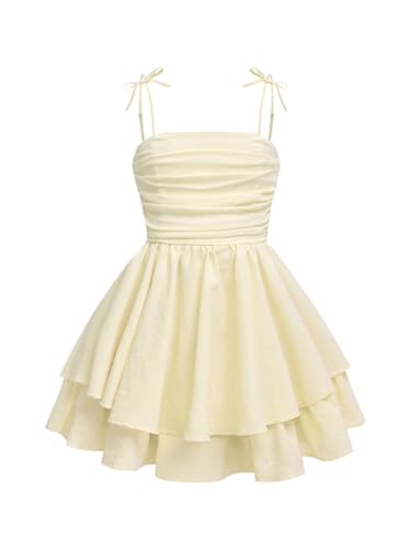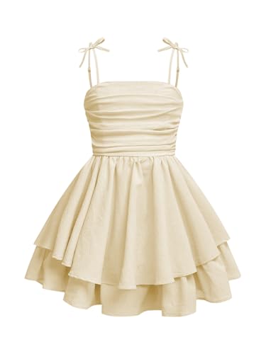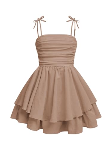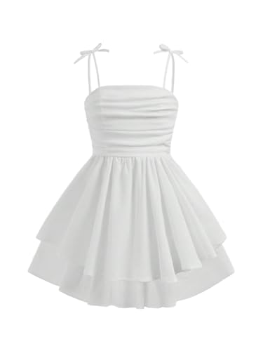 {"about_product": ["Material: Comfy and soft material, it is breathable and skin-friendly to wear", "Design: Tie shoulder, ruched, sleeveless, spaghetti strap, high waist, a line, ruffle hem, flared hem, mini length, girls dress", "Occasion: Cute dress for girls, easily pair with mary jane shoes, leather shoes, casual shoes and other items", "Match: Wonderful option for birthday party, family gathering, trip, vacation, holiday, picnic and other occasions", "Please kindly check the size chart in the production description before ordering. (The production description is clothes size, not body size )"], "product_description": null, "product_information": {"ASIN": "B0DTK6JPBV", "Department": "girls", "Customer Reviews": "4.3 4.3 out of 5 stars \n\n (78)", "Best Sellers Rank": "#40,202 in Clothing, Shoes & Jewelry (See Top 100 in Clothing, Shoes & Jewelry) #94 in Girls' Casual Dresses", "Date First Available": "January 21, 2025"}, "product_details": {"Origin": "Imported", "Fabric type": "97% Polyester,3% Elastane", "Closure type": "Pull On", "Care instructions": "Machine Wash"}}