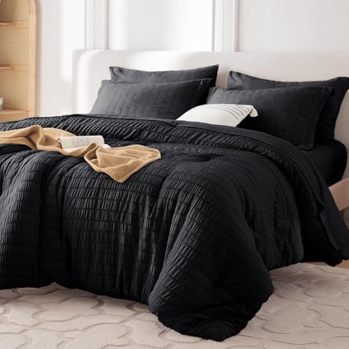{"about_product": ["Luxuriously Soft & Year-Round Comfort: Crafted from premium microfiber fabric, the queen comforter set provides an ultra-soft and smooth touch. Filled with 240 GSM down alternative filling, Our comforter offers a cloud-like sleeping experience year-round", "Elegant Seersucker Texture: Elevate your bedroom with refined seersucker detailing, featuring delicate pleats that create dimensional wave patterns. Reinforced hidden stitching resists wrinkles, blending effortless maintenance with sophisticated charm", "Engineered for a Perfect Fit: The deep-pocket fitted sheet (up to 14\") stays securely in place with 360° elastic edging, while envelope-closure pillowcases keep pillows neatly tucked in, ensuring your bedding remains perfectly positioned for restful sleep", "Complete 7 Pieces Bed in a Bag Set: The MUXHOMO queen size comforter set includes 1 comforter (88\" x 88\"), 2 pillowcases (20\" x 30\"), 2 pillow shams (20\" x 26\" + 2\"), 1 fitted sheet (60\" x 80\" + 14\"), and 1 flat sheet (90\" x 102\")", "Easy Care: Designed for convenience, our bedding set is machine washable on a gentle cycle in cold water. It dries quickly on low heat, making it perfect for everyday use. Contact us with any product questions - we'll resolve them promptly"], "product_description": null, "product_information": {"ASIN": "B0DW3CLZSY", "Size": "Queen (88\"x88\")", "Brand": "MUXHOMO", "Color": "01 - Beige", "Style": "Seersucker", "Theme": "Romance", "Pattern": "Seersucker", "Seasons": "All", "Material": "Soft Microfiber", "Fabric Type": "Microfiber", "Item Weight": "8.95 pounds", "Manufacturer": "MUXHOMO", "Number of Pieces": "7", "Best Sellers Rank": "#6,250 in Home & Kitchen (See Top 100 in Home & Kitchen) #53 in Bedding Comforter Sets", "Pillowcase Length": "20 Inches", "Fitted Sheet Depth": "35.56 Centimeters", "Package Dimensions": "16.5 x 11.77 x 5.24 inches", "Included Components": "Comforter, Fitted Sheet, Flat Sheet, Seersucker Pillowshams, Standard Pillowcases", "Date First Available": "February 5, 2025", "Product Care Instructions": "Machine Wash"}, "product_details": {"Size": "Queen (88"x88")", "Brand": "MUXHOMO", "Color": "01 - Beige", "Style": "Seersucker", "Included Components": "Comforter, Fitted Sheet, Flat Sheet, Seersucker Pillowshams, Standard Pillowcases"}}