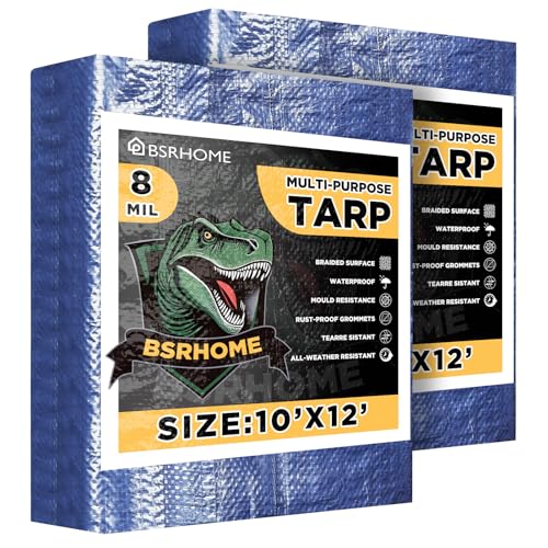 {"about_product": ["【Finished Size】 Our heavy duty tarp with a thickness of 8 mils,measures 10 feet by 12 feet. The grommets inside diameter is 0.09 inches(2.3 cm).", "【Reinforcement Design】 The edge of waterproof tarpaulin is double hemmed and heat sealed to preventing wind and rain from penetrating underneath. Each corner is reinforced with plastic edging to prevent tearing.", "【High Quality Polyethylene】Made from high-quality polyethylene,which can withstand heavy-duty use and harsh weather conditions. Its waterproof and UV-resistant design ensures that your firewood stay safe and dry, year-round", "【Rustproof Aluminium Grommets】The grommets are made from ultra-strong aluminum, which offers excellent rust resistance and ensures long-term durability. The appropriately spaced holes are compatible with most ropes, bungee cords, and hooks, making it easy to secure and tie down the tarp to any item.", "【Widely Use】 The poly tarpaulin is versatile,including rain and sun protection for patio, shelter,leaf, wood, billboard, roof, outdoor furniture, boat and car. Additionally, it can be used to make tent canopies or waterproof ground pads for camping, providing ground protection during painting and other gardening home projects."], "product_description": null, "product_information": {"ASIN": "B0DXJVQY1D", "Size": "10'x12' 2pk", "Brand": "BSRHOME", "Color": "Blue-8mil", "Material": "Polyethylene (PE)", "Item Weight": "5.15 pounds", "Manufacturer": "BSRHOME", "Item Thickness": "8 Mils", "Number of Items": "2", "Best Sellers Rank": "#11,578 in Tools & Home Improvement (See Top 100 in Tools & Home Improvement) #50 in Tarps", "Package Dimensions": "15.94 x 12.48 x 3.46 inches", "Date First Available": "February 17, 2025", "Water Resistance Level": "Waterproof", "Recommended Uses For Product": "Boat Cover, Camping, Emergency Preparedness, Gardening, Painting"}, "product_details": {"Size": "10'x12' 2pk", "Brand": "BSRHOME", "Color": "Blue-8mil", "Material": "Polyethylene (PE)", "Item Weight": "2.34 Kilograms", "Manufacturer": "BSRHOME", "Item Thickness": "8 Mils", "Number of Items": "2", "Water Resistance Level": "Waterproof", "Recommended Uses For Product": "Boat Cover, Camping, Emergency Preparedness, Gardening, Painting"}}