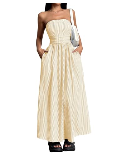 {"about_product": ["Note: Size:XS--bust--28.4-37.8”;S--bust--29.9-39.4”;M--bust--31.5-40.9”; L--bust--33.9 - 43.3”.This material has no stretch but features a slightly oversized bust design. For a more fitted look, we recommend sizing down.", "Features a stylish strapless design with shirred back detailing for customizable waist definition. The high waist cut, flared hem, and convenient side pockets combine fashion with function.", "Perfect for both casual and formal events - wear it to the beach, office, parties, weddings, or photoshoots. The elegant design transitions seamlessly from day to night.", "Pair with heels for evening elegance, sandals for daytime chic, or layer with cardigans and statement jewelry to create your perfect look.", "Please note: This dress runs slightly large in the bust. We strongly recommend checking the garment measurements in the last image (not body measurements) and considering sizing down for optimal fit."], "product_description": null, "product_information": {"ASIN": "B0DY19PYPG", "Department": "womens", "Customer Reviews": "4.3 4.3 out of 5 stars \n\n (111)", "Product Warranty": "For warranty information about this product, please click here", "Best Sellers Rank": "#102,318 in Clothing, Shoes & Jewelry (See Top 100 in Clothing, Shoes & Jewelry) #361 in Women's Formal Dresses #1,181 in Women's Casual Dresses", "Date First Available": "February 21, 2025"}, "product_details": {"Origin": "Imported", "Fabric type": "95% Polyester, 5% Elastane", "Closure type": "Pull On", "Care instructions": "Machine Wash"}}