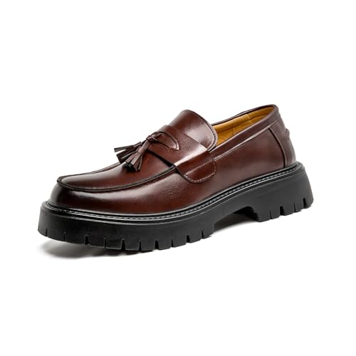 {"about_product": ["Classic business design: glossy black patent leather, with low-key tassel decoration, perfectly blending formal and casual styles, easily adapting to workplace commuting, business meetings and daily travel scenes, showing elegant taste.", "Convenient to put on and take off: built-in thick-soled platform design, invisible height increase of 3-5cm, with a slip-on lazy shoe structure, no need to tie, time-saving and labor-saving to put on and take off, taking into account comfort and practicality, no burden to walk all day.", "Anti-slip and wear-resistant sole: customized concave and convex rubber outsole, strong grip, anti-slip and wear-resistant, no fear of rainy days or smooth ground, ensuring walking safety, suitable for long-term standing or light outdoor activities.", "Detail texture: classic round-toed shoe shape accommodates foot shape, combined with retro \"Penny loafers\" elements, tassel embellishment adds exquisiteness, highlights low-key luxury, and easily enhances the overall style.", "Easy-care features: High-quality patent leather fabric is waterproof and stain-resistant, and can be refreshed with daily wipes; the breathable soft padding inside fits the shape of the foot and will not make you tired after wearing it for a long time. It is an ideal shoe for urban men who pursue quality and efficiency."], "product_description": null, "product_information": {"ASIN": "B0DY87CHXX", "Department": "mens", "Manufacturer": "ZGHNP", "Customer Reviews": "4.3 4.3 out of 5 stars \n\n (46)", "Product Warranty": "For warranty information about this product, please click here", "Best Sellers Rank": "#91,100 in Clothing, Shoes & Jewelry (See Top 100 in Clothing, Shoes & Jewelry) #215 in Men's Loafers & Slip-Ons", "Item model number": "0224nanlsx", "Package Dimensions": "3 x 2 x 1 inches; 1.6 ounces", "Date First Available": "February 24, 2025"}, "product_details": {"Closure type": "Pull-On", "Sole material": "Rubber", "Inner material": "Breathable Soft Padding", "Outer material": "Faux Leather"}}