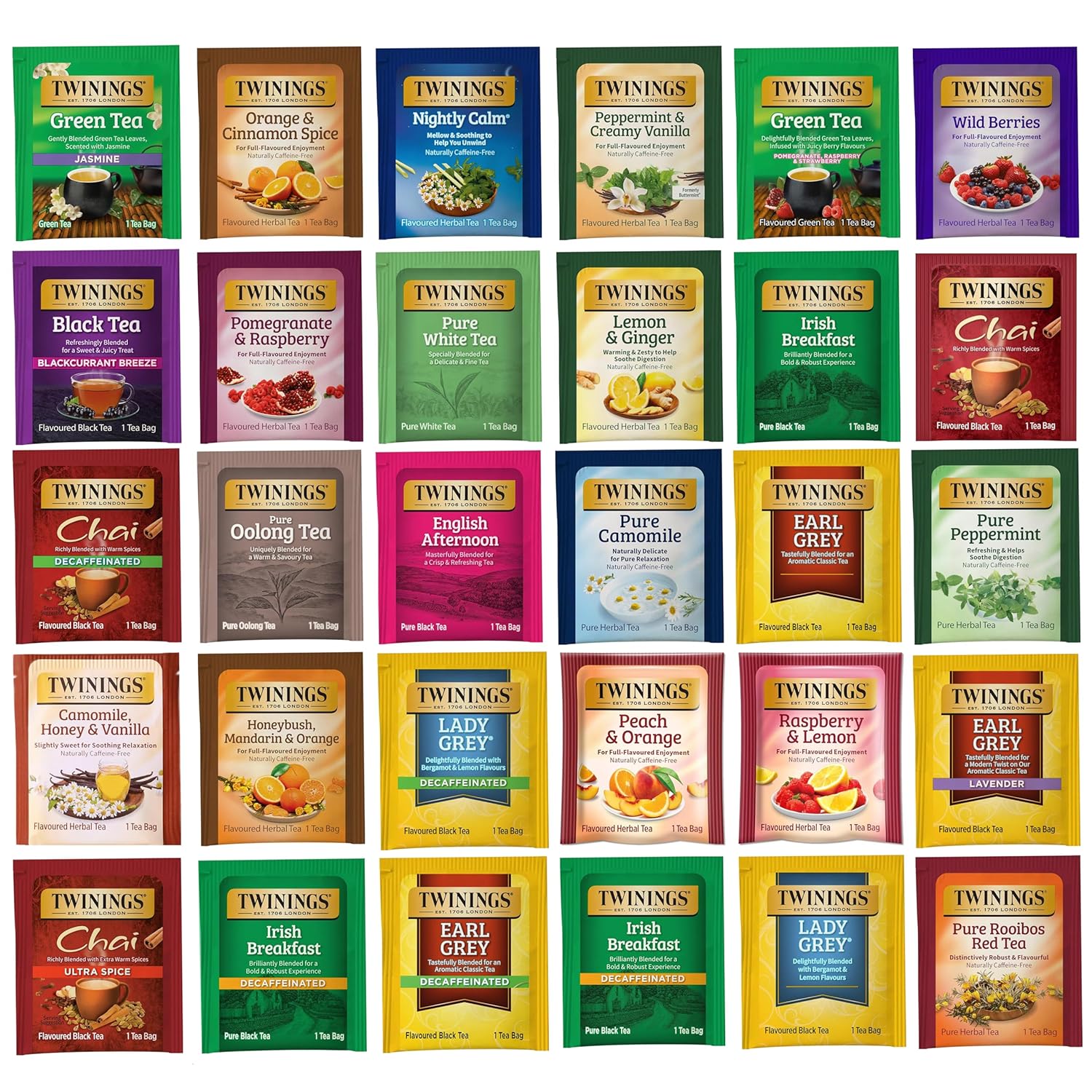 {"about_product": ["60 PACK 30 ASSORTED FLAVORS: The Twinings Tea Bags Sampler Assortment Variety Pack includes 60 tea bags 30 flavors with a perfect variety of Twinings teas.", "GREAT CHOICE FOR ANY OCCASION: Ideal for birthdays, holidays, or special celebrations. This assortment box is a fantastic selection for tea lovers, family, friends, coworkers, or couples to enjoy together.", "IDEAL FOR TEA LOVERS: Whether you're a long-time tea lover or just starting to explore, this sampler pack is the perfect way to discover new flavors. It’s a great choice for yourself or any tea enthusiast in your life.", "PREMIUM QUALITY: Individually wrapped tea bags ensure freshness and convenience, perfect for home, office, or on-the-go.", "EASY TO PREPARE: Add freshly boiled water. Steep about 3 minutes or to desired strength. Enjoy it hot or cold over ice.", "30 PACK 30 ASSORTED FLAVORS (Pack of 2): Enjoy 60 tea bags total."], "product_description": "Twinings Tea Bags Sampler Assortment Variety Pack (60 Count) 30 Different Flavors for Tea Lovers: Her, Him, Women, Men, Couples, Family, Friends, Coworkers", "product_information": {"ASIN": "B0DZ44NRKR", "Units": "60 Count", "Manufacturer": "Twinings", "Customer Reviews": "4.7 4.7 out of 5 stars \n\n (27)", "Best Sellers Rank": "#39,900 in Grocery & Gourmet Food (See Top 100 in Grocery & Gourmet Food) #314 in Tea Samplers", "Package Dimensions": "5.63 x 5.08 x 3.7 inches; 7.83 ounces"}, "product_details": {"Brand": "Twinings", "Flavor": "Variety", "Item Form": "Teabags", "Unit Count": "60 Count", "Tea Variety": "Black"}}