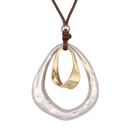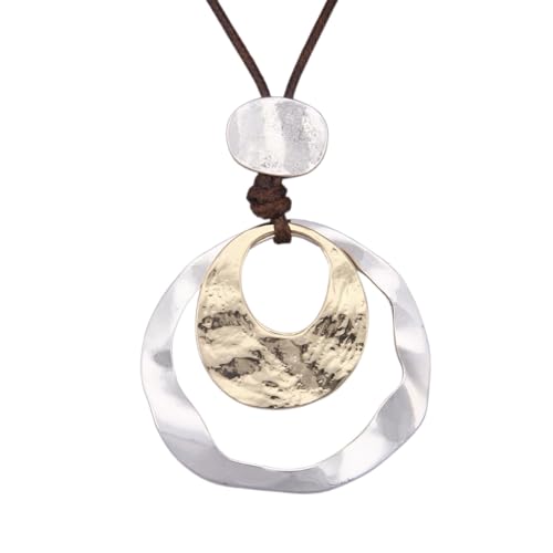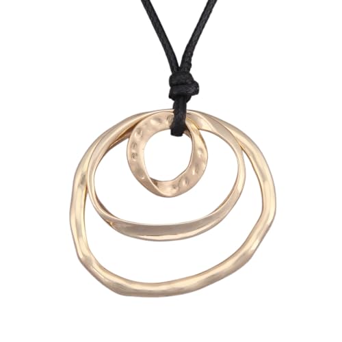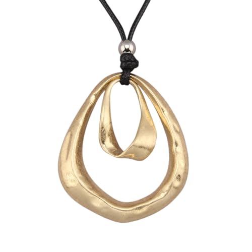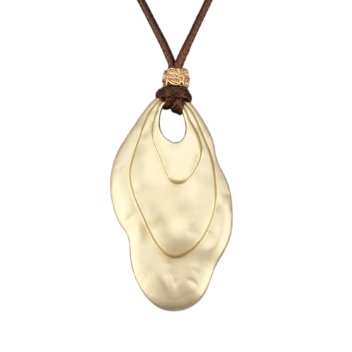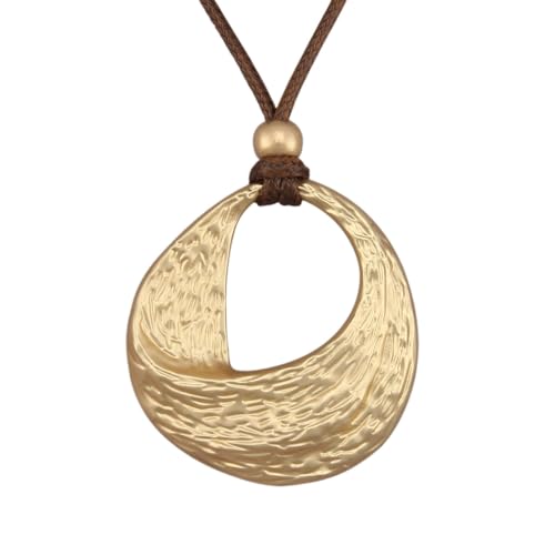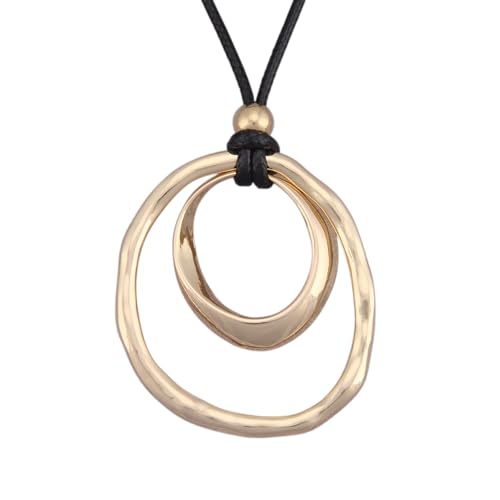 {"about_product": ["This boho hippie jewelry piece showcases a double-layered pendant suspended from an 82cm cord pendant necklace. Perfect for adding a touch of elegance to your womens boho necklaces, this long black cord necklace is suit for daily wear or special occasions", "Make a statement with our women casual necklace, designed for the modern bohemian. The long leather necklace features a golden pendant, perfect for those who love bohemian necklaces, and this rope pendant necklace offers both durability and style", "The long black cord necklace is adorned with a striking double-layered golden pendant, measuring 5cm in both length and width. Its versatile design makes it suitable for various occasions, from casual outings to formal gatherings", "Step into the world of bohemian chic with our long leather necklace, a true gem for any womens boho necklaces lover. The bohemian necklaces feature a bold 5cm golden pendant, adding a touch of sophistication to your look", "Whether you're heading to a casual outing or a festive gathering, this leather boho necklace will complement your outfit effortlessly. It's also an ideal gift for friends, parents, or loved ones who appreciate unique boho hippie jewelry"], "product_description": "Long Pendant Necklaces for Women Bohemian Vintage Layered Leather Choker Necklace Gold Statement Pendant Boho Style Jewelry\n\n -Beautiful and elegant design, this chunky boho necklace is perfect for daily wear, also an ideal gift for your lover, fiancee, wife, mother, Valentine or just a friend,etc. Great gifts on wedding, anniversary day, Valentine's Day , Mother 's Day or Christmas Day.\n\n Womens Pendant Necklace Size Details\n This leather vintage necklace is a stylish accessory that features an adjustable leather cord, making it suitable for most neck sizes and designed specifically for achieving that hippie choker necklace look.\n Womens beaded necklaces size is 7.8cm(3inch) - 5.4cm(2.1inch), rope length about 86cm(33.85inch) \n\n Soft Leather - Alloy Accessories\n This boho rope necklace is crafted with a high-quality leather chain that is handmade, ensuring unparalleled durability and softness.\n Not only is it soft and comfortable to wear, but it also exudes a sense of bohemian elegance that will enhance any outfit. \n Bohemian necklace unique design and intricate details make it a must-have for any fashion enthusiast.\n\n Perfect Match\n Whether you're dressing up for a formal occasion or adding a touch of boho charm to your everyday look, this large vintage necklace effortlessly complements shirts, evening dresses, sweaters, and more.\n The boho silver pendant features a unique and eye-catching design, making it a standout accessory that will make the wearer stand out from the crowd.", "product_information": {"ASIN": "B0DK3FRYCN", "Department": "womens", "Customer Reviews": "4.3 4.3 out of 5 stars \n\n (118)", "Product Warranty": "For warranty information about this product, please click here", "Best Sellers Rank": "#47,440 in Clothing, Shoes & Jewelry (See Top 100 in Clothing, Shoes & Jewelry) #73 in Women's Choker Necklaces", "Product Dimensions": "31.5 x 4 x 0.4 inches; 1.76 ounces", "Date First Available": "October 15, 2024"}, "product_details": {"Material": "Faux Leather, Zinc", "Chain type": "Cord", "Clasp type": "Toggle", "Item width": "4 inches", "Metal type": "Zinc", "Item display length": "4 inches"}}