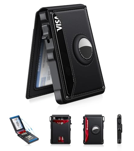 {"about_product": ["AIRTAG WALLET DESIGN - Never lose your wallet again with our innovative AirTag wallet for men. This smart men wallet features a dedicated air tag holder that securely integrates your A-ple Airtag for real-time tracking during travel or daily commutes.(Air Tag Not Included)", "ADVANCED RFID BLOCKING PROTECTION - KIKVES intelligence rfid wallet for men with airtag holder protects cards from digital theft and keeps your sensitive information secure with advanced RFID blocking technology, enhances your peace of mind while on the go. Say goodbye to electronic theft and electronic scam.", "MINIMALIST BUT LARGE CAPACITY - Our minimalist wallet for men with air tag holder fits effortlessly in pockets without bulk, yet holds 12+ cards, cash and AirTag securely. A money clip on the inside of the card holder helps you store cash(For the best magnetic effect, please DO NOT clip over 5 bills to the money click inside).", "POP-UP ERGONOMIC DESIGN - One-click pop-up button fans out cards instantly for quick access, ensures that your essentials are easily accessible without the bulk. KIKVES men's money clip wallet is perfect for busy professionals, gym-goers, or travelers needing efficiency, combines fashion and functionality.", "PERFECT GIFT FOR MEN - Looking for gifts for men? All KIKVES men airtag wallets are packaged in beautiful premium gift boxes and excellent choice for fathers, boyfriends, husbands, brothers, or other family and friends whom you love. Ideal for birthdays, anniversaries, holidays, Christmas or other special occasions."], "product_description": null, "product_information": {"ASIN": "B0DZHBM8KR", "Department": "Unisex", "Item Weight": "4.5 Ounces", "Manufacturer": "KIKVES", "Best Sellers Rank": "#2,740 in Clothing, Shoes & Jewelry (See Top 100 in Clothing, Shoes & Jewelry) #33 in Men's Wallets", "Item model number": "V20-black", "Product Dimensions": "0.5 x 2.5 x 4 inches"}, "product_details": {"Brand": "KIKVES", "Color": "carbon fiber", "Style": "Air Tag Wallet for Men", "Pattern": "Airtag Wallet for Men", "Material": "Aluminum, Carbon Fiber, Metal"}}