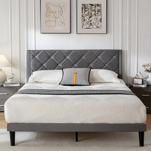 {"about_product": ["【Modern Unique Design】The headboard is decorated with golden rivets, and there is a high-density sponge inside, which is matched with the perfect line of needlework to form a grid. DUMGTIF 's exclusive design not only looks modern and unique, and makes the back more comfortable to lean on", "【Solid Structure】①the solid wood slats ② the center support legs③the head metal support rod④both sides of the bottom support metal strips.⑤sturdy plastic foot.Above 5 points, support the whole bed frame, improve the service life, and load-bearing capacity.Note: Please follow the instructions for installation.", "【No Box Spring Needed】This platform bed frame includes 10 durable and evenly-spaced solid wood slats designed to directly support your mattress without the need for springs box, you can save more money and time. (Please note: Mattress sold separately)", "【Easy Assembly】All the parts are in one box. Before assembly, read the installation instructions carefully and install according to the instructions. It can be assembled in 30 minutes, even for a novice.Please note: If you are installing with an electric screw machine, be sure to tighten all screws using a ratchet wrench.", "【Non-Slip and Comfortable Night】 Fastened by soundproof velcro and mute bar between the metal frame and the wooden slats plus anti-slip and plastic foot pads, can eliminate the friction noise, can provide you with a comfortable sleep night."], "product_description": null, "product_information": {"UPC": "767353809901", "ASIN": "B0DZHDST53", "Size": "Queen", "Brand": "DUMGTIF", "Color": "Black", "Finish Type": "Unfinished", "Form Factor": "Platform Bed", "Item Weight": "44 pounds", "Manufacturer": "DUMGTIF", "Weight Limit": "800 Pounds", "Special Feature": "No Box Spring Needed", "Best Sellers Rank": "#41,619 in Home & Kitchen (See Top 100 in Home & Kitchen) #143 in Bed Frames", "Item model number": "1", "Product Dimensions": "81\"L x 60.2\"W x 39.3\"H", "Included Components": "Headboard& Bed frame", "Date First Available": "March 6, 2025", "Upholstery Fabric Type": "Velvet", "Age Range (Description)": "Adult"}, "product_details": {"Size": "Queen", "Color": "Black", "Style": "Minimalist", "Special Feature": "No Box Spring Needed", "Upholstery Fabric Type": "Velvet"}}