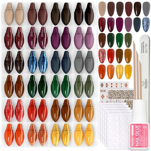 {"about_product": ["【All In One Kit】The short press on nails set include 720pcs short Almond press on nails in 15 Sizes, 3 matte solid colors, 6 glossy solid color, 10 colors glitter press on nails, 3 colors press on nails french tip black, white and champagne gold, 1 pink with white color and 1 nude with glitter color. And 10g nail glue, 5 sheets totaling 120pcs of adhesive nail tabs, 3pcs nail sticks, 1pcs 100/180 nail file and 4 sheets nail stickers. The set includes all the essential nail tools for any occasion and style you want to wear all year round, with no need to buy additional accessories.", "【Natural & Functional】These short fake nails fit our natural nails well and make the manicure look more natural. With short almond design, it is cute and convenient. The shorter length won't affect our normal life, no matter you are working, doing housework or traveling, you don't have to worry about peeling or chipping.Total 24 colors includes various styles and patterns. Great value.", "【High Quality】Beetles press on nails pack are like the texture of nail polish, the nails are soft, light and thin and made of high quality ABS material, which is not easy to break. No need base coat, convenient and easy for nail art, also can be reused. The bottom of the false nail is flexible that can fit your natural nails well and don’t hurt our nail edges and the top is more solid to avoid folding.", "【Art Design & Easy To Match】The press on nails bulk includes multi-color + glitter fake nails and style stickers*4pcs, rich stickers can be DIY multiple single-color, color jumping and other simple styles, 24 different colors, including classic and elegant matte colors, bright and lively glossy colors, super sparkling glitter colors, nude colors with natural patterns and popular French tip design, which brings more charming effect and matching possibilities. You can enjoy DIY nail art fun with friends and family, create your own unique works!", "【Christmas Press On Nails】The Fall Nail Fest for women set contains 10ml of quick-drying adhesive + 5 sheets of jelly stickers, 2 types of bonding method, no UV light is needed, self-adhesive, high viscosity, invisibility, easy to wear and remove, clean and no residue. You can get beautiful nail art easily and quickly at home instead of going to professional nail salon, saving time and money, clean and economy."], "product_description": null, "product_information": {"ASIN": "B0DZX5TTZJ", "Manufacturer": "Gelab cosmetics LLC", "Customer Reviews": "4.3 4.3 out of 5 stars \n\n (607)", "Best Sellers Rank": "#2,788 in Beauty & Personal Care (See Top 100 in Beauty & Personal Care) #28 in Press On False Nails", "Product Dimensions": "6.3 x 4.72 x 0.59 inches; 7.05 ounces"}, "product_details": {"Size": "15 sizes (US standard)", "Brand": "beetles Gel Polish", "Pattern": "A-Short Almond-720PCS-Mirror Ball", "Material": "Acrylonitrile Butadiene Styrene (ABS)", "Item Form": "Gel"}}