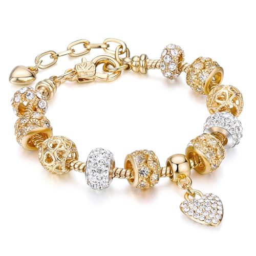 {"about_product": ["❤️ Premium Material: This gold charm bracelet for women is made of environmental alloy and crystal, High polished and shinny on both sides of bead bracelet, strong and smooth edge", "❤️ Adjustable Size: Charm bracelets length: 7.5 + 1.2 inches extender. Flexible and Considerate design, Scalable adjustment", "❤️ Perfect Gift: This Gold charm bracelet is best Birthday gift, Christmas gift, Mother's day gift, Valentine's day gift Gift for Wife, Girlfriend, Lover, Mother, Grandmother, Daughter, Sister, Aunt, Mom, Grandma, Nana etc", "❤️ Suitable for Many Occasions: Our chic and decent bracelet is perfect for giving to your best friends, family, lover, sisters nieces or anyone on birthday, christmas, valentine's day, graduation, wedding or mothers day etc. The design of the bracelet is simple and elegant, and can be easily matched with various styles of clothing, whether it is casual or formal occasions", "❤️ Satisfaction Customer Service: If you are not satisfied with the charm bracelets for women, please contact us promptly. Our dedicated staff is here to assist with questions or concerns"], "product_description": null, "product_information": {"ASIN": "B0F8897RZZ", "Department": "womens", "Customer Reviews": "4.2 4.2 out of 5 stars \n\n (66)", "Product Warranty": "For warranty information about this product, please click here", "Best Sellers Rank": "#96,244 in Clothing, Shoes & Jewelry (See Top 100 in Clothing, Shoes & Jewelry) #99 in Women's Link Charm Bracelets", "Date First Available": "May 10, 2025"}, "product_details": {"Gem type": "No gemstone", "Material": "Alloy", "Chain type": "Bracelet", "Clasp type": "Buckle", "Metal type": "Bronze", "Item type name": "Bracelets"}}