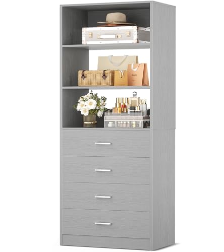 {"about_product": ["【Closet System with 4 Drawers】This wooden closet system includes 4 durable wooden drawers for maximizing private storage. Unlike flimsy fabric drawers, ours are easy to clean and built to last. Ideal for personal belongings, underwear or socks.. Smooth-gliding metal sliders and sleek handles make opening effortless. Ideal for reach-in closets, walk-in closets, office & more.", "【Ample Storage Space】Our Wood Closet Organizer with 3 added open shelves for decorative items or items that need to be picked up in time. this modular closet organizer system is optimized for folded clothes—jeans, sweaters, T-shirts, and more. The open design helps you keep essentials neatly stacked and always within reach. Compatible with Our Modular Storage Closet System. Dimensions: 21.3\"L x 15.8\"W x 80\"H.", "【Sturdy & Durable Structure】This clothing rack with drawers is constructed from premium wood board offers excellent load-bearing capacity, ensuring exceptional stability and durability, Our closet drawers system includes 2 anti-tip kits to no wobbling or collapsing here! Add on additional hang rods, compatible top compatible shelves to create a custom closet.", "【Wall-Friendly Structure】The upper section of the cabinet is purposefully designed to be slightly deeper than the bottom half. This thoughtful structure is made to accommodate baseboards along your wall, allowing the cabinet to sit flush without leaving unsightly gaps. It's a smart space-saving design that enhances both stability and aesthetics—no wasted space behind!", "【Easy to Assembly & Excellent After-sales Services】All necessary hardware & tools included and all parts were clearly labelled, easy to assemble follow instruction. If your item arrives damaged, scratched or missing part, please feel free to contact us, our experienced customer service team will help you solve the problem within 24 hours."], "product_description": null, "product_information": {"ASIN": "B0F1YRD66S", "Size": "23.7''", "Brand": "Aheaplus", "Color": "White", "Finish": "Painted", "Set Name": "Closet Drawers System", "Base Type": "Legs", "Room Type": "Bedroom, Laundry Room, Closet, Entryway, Home Office", "Door Style": "No Doors", "Model Name": "YH02", "Finish Type": "Painted", "Manufacturer": "Aheaplus", "Mounting Type": "Floor Mount", "Frame Material": "Engineered Wood", "Hardware Color": "Silver", "Handle Material": "Metal", "Is Customizable": "No", "Special Feature": "Anti-Tipping, Stackable", "Storage Options": "4 drawers, 3 open shelves, 7 compartments", "Number of Levels": "3", "Number of Pieces": "1", "Special Features": "Anti-Tipping, Stackable", "Assembly Required": "Yes", "Best Sellers Rank": "#60,311 in Home & Kitchen (See Top 100 in Home & Kitchen) #30 in Storage Drawer Units", "Installation Type": "Freestanding", "Item model number": "YH02", "Number of Shelves": "3", "Top Material Type": "Engineered Wood", "Back Material Type": "Engineered Wood", "Product Dimensions": "15.8\"D x 21.3\"W x 80\"H", "Included Components": "Handles", "Date First Available": "March 19, 2025", "Number of Compartments": "7", "Recommended Uses For Product": "Clothes, Shoes, Bags, Blankets, Towels, Crafts", "Assembly Instructions Description": "All necessary hardware & tools included and all parts were clearly labelled, easy to assemble follow instruction."}, "product_details": {"Brand": "Aheaplus", "Color": "White", "Material": "Wood", "Product Dimensions": "15.8"D x 21.3"W x 80"H", "Recommended Uses For Product": "Clothes, Shoes, Bags, Blankets, Towels, Crafts"}}
