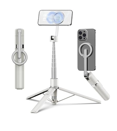 {"about_product": ["Magnetic Aluminum Phone Mount:The phone stand is made of aluminum,compatible with magsafe function, allowing seamless attachment for MagSafe-enabled devices.During use, you can quickly attach and detach the cellphone, which is more convenient and sturdier than the ordinary spring-loaded phone clips.The cell phone holder uses a powerful magnet to provide a stable and secure hold for your phone.", "Max Height 68in:Featuring 8-section aluminum alloy telescopic rods, this tripod for iphone extends from 11 inches to 68 inches (173 cm), offering stability and versatility for various shooting scenarios. Whether you're capturing group photos, vlogging, or recording videos, the adjustable height ensures you get the perfect frame every time.", "Adjustable 360° Free Rotation:The phone mount allows for 360° horizontal rotation and 200° vertical tilt adjustment, giving you complete control over your phone's positioning. This flexibility ensures you can capture photos and videos from different angle, whether you're shooting landscapes, portraits, or dynamic action shots.", "Built-in Rechargeable Remote:The selfie stick for iphone comes with a built-in, detachable wireless remote control that supports charging. This remote allows you to take photos or start/stop video recording from a distance, making it ideal for solo travelers, content creators, or anyone who needs hands-free operation.", "Portable All-in-1 Design:Combining a tripod for cell phone, selfie stick, and magnetic phone holder into one compact device, this item is designed for portability and convenience. This portable tripod weighs only 13 ounces (320 grams) and folds down to just 11 inches, making it easy to carry in your bag or backpack. Whether you're traveling, hiking, or exploring the city.", "Wide Compatibility & Metal Ring:The cell phone stand for magsafe is compatible with iPhone 12/13/14/15/16/17 series and more (all phones that support magnetic). For non-magnetic devices, the included metal ring can be attached to your phone, enabling it to work seamlessly with the magnetic mount. This ensures wide compatibility with a variety of smartphones, making it a versatile tool for all users."], "product_description": null, "product_information": {"ASIN": "B0F21QY3H8", "Batteries": "1 Lithium Ion batteries required. (included)", "Item Weight": "15.2 ounces", "Manufacturer": "TONEOF", "Best Sellers Rank": "#105 in Cell Phones & Accessories (See Top 100 in Cell Phones & Accessories) #1 in Cell Phone Photo & Video Kits", "Item model number": "CX609", "Product Dimensions": "13.58 x 13.58 x 68 inches", "Date First Available": "April 11, 2025"}, "product_details": {"Brand": "TONEOF", "Color": "Beige Gray", "Material": "Aluminum, Plastic", "Item Weight": "430 Grams", "Leg Diameter": "16.5 Inches", "Maximum Height": "68 Inches", "Minimum Height": "11 Inches", "Special Feature": "Foldable, Lightweight, Remote Control, Telescopic", "Tripod Head Type": "Ball Heads", "Compatible Devices": "Smartphone"}}