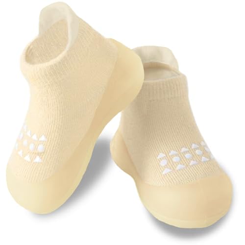 {"about_product": ["Breathable & Comfortable:These unisex baby socks shoes with non slip rubber soft Sole, knitted with soft breathable combed cotton. The insole is a memory insole, which fits the shape of the baby's feet, fit snugly and comfortably, adapting to your toddler’s natural foot movements. Super flexible , lightweight and comfortable fit all seasons.", "Non Slip:Sock shoe sole is made of non-slip rubber material. thanks to baby walking shoes design, it touches the ground flat. At the same time, The thickened rubber sole of walking shoes for babies hugs the foot from both the front and the back, offer extra protection from sharp objects. It allows your toddlers to walk safely on different surfaces.", "Toe Protection with Rubber Anti-Collision:The thickened Rubber Anti collision Shoe head, buffer impacts,protect your baby’s tiny feet from injury,keeping your baby’s feet secure as they move.", "Elastic Sock Opening :The socks mouth includes a stretchy, elastic opening,no tight, it is very easy to put on and off. Besides, also can effectively maintain the comfort of the sock shoes and is not easy to slide. Your boy or girl can take the first steps with confidence.", "Suitable for all Occasions:In addition to its durable and breathable features, it looks very cute and adorable. Whether for indoor play, a day out, or even just lounging at home, these soft sole baby shoes are versatile enough to match any occasion and Perfect for curious little explorers."], "product_description": "", "product_information": {"ASIN": "B0G25J41GJ", "Customer Reviews": "4.5 4.5 out of 5 stars \n\n (1,729)", "Product Warranty": "For warranty information about this product, please click here", "Best Sellers Rank": "#47 in Clothing, Shoes & Jewelry (See Top 100 in Clothing, Shoes & Jewelry) #1 in Boys' Slipper Socks", "Date First Available": "November 13, 2025"}, "product_details": {"Sole material": "Rubber", "Inner material": "Cotton", "Outer material": "Cotton", "Water resistance level": "Not Water Resistant"}}