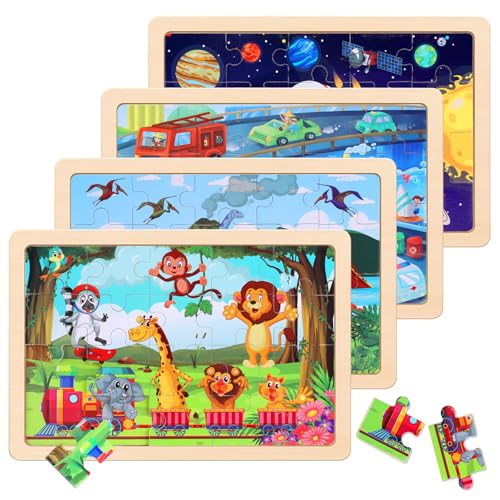 {"about_product": ["Fun & Educational Puzzle Set: Spark curiosity and creativity with our Wooden Jigsaw Puzzle Set, featuring 4 exciting themes—Dinosaurs, Animals, Space, and Transportation. Each 20-piece puzzle helps develop problem-solving skills, fine motor coordination, and logical thinking through engaging play.", "Safe & Durable Materials: Made from premium, these puzzles feature smooth, rounded edges for safe handling. Designed for toddlers, the sturdy construction ensures long-lasting durability, making them perfect for repeated use.", "Easy Storage & Organization: Each puzzle includes a sturdy wooden storage tray with a removable illustrated guide, helping kids assemble pieces with ease. The built-in wooden frame keeps puzzles secure, reducing clutter and making clean-up simple.", "Hands-On Learning Through Play: Encourage early childhood development with puzzles that enhance hand-eye coordination, spatial awareness, and problem-solving skills. As kids complete each puzzle, they gain confidence while reinforcing important cognitive abilities.", "Perfect Gift for Any Occasion: A great gift choice for birthdays, Christmas, Easter, and more, this puzzle set provides hours of interactive fun for kids ages 3-6. Ideal for solo or family play, it’s a thoughtful way to promote learning and bonding."], "product_description": null, "product_information": {"ASIN": "B0F3GDQL98", "Item Weight": "12.7 ounces", "Manufacturer": "NASHRIO", "Best Sellers Rank": "#1,273 in Toys & Games (See Top 100 in Toys & Games) #11 in Jigsaw Puzzles", "Product Dimensions": "11.7 x 8.7 x 0.31 inches", "Manufacturer recommended age": "36 months - 8 years"}, "product_details": {}}