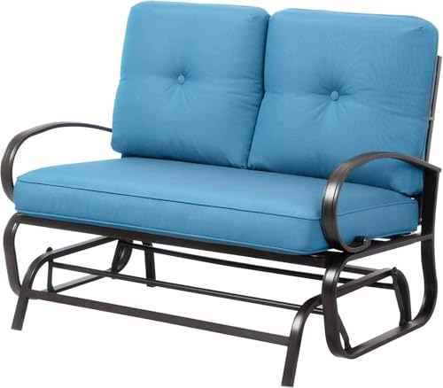 {"about_product": ["[Exceptional Durability and Stability]:This outdoor glider bench boasts remarkable sturdiness and longevity, thanks to its solid wrought iron frame and thick cushions. Designed to comfortably accommodate two individuals, the robust steel structure ensures that this glider chair will withstand the test of time.", "[Ergonomic Comfort]:Featuring thicked back and detachable seat cushions, along with smooth, ergonomically designed armrests, this outdoor rocking loveseat offers unparalleled comfort, allowing you to unwind without feeling tired or uncomfortable—even after hours of sitting.", "[Ideal for Any Space]:Our patio glider bench is perfect for both indoor and outdoor settings. Whether placed in your beautiful garden, backyard, balcony, or patio, this glider not only enhances the aesthetic appeal of your space but also serves as a highly functional piece of furniture that you and your guests will appreciate.", "[Spacious Seating for Two]:This patio glider loveseat provides ample room for two people to relax comfortably without encroaching on each other's space. You can enjoy a gentle rocking motion while spending quality time with family and friends, all in a safe and cozy setting.", "[Simple Assembly Process]:This outdoor glider loveseat comes complete with all necessary hardware and tools for assembly. Following the provided instructions, you'll find it easy to set up on your own. Dimensions of the bench are 47.24\"x26.57\"x37\" (LxWxH)."], "product_description": "Shintenchi Metal Outdoor Patio Swing Glider Bench, Loveseat Rocking chair, Wrought Iron Patio Furniture Steel Frame Glider Chair with Cushion for Porch, Balcony, Garden(Ocean Blue)", "product_information": {"UPC": "810178060511", "ASIN": "B0F3GT2MN1", "Size": "47.24\" x 26.57\" x 37\"", "Brand": "Shintenchi", "Color": "Ocean Blue", "Item Weight": "40 pounds", "Manufacturer": "Shintenchi", "Seating Capacity": "2", "Assembly required": "Yes", "Best Sellers Rank": "#71,153 in Patio, Lawn & Garden (See Top 100 in Patio, Lawn & Garden) #15 in Patio Gliders", "Item model number": "HXY", "Batteries required": "No", "Product Dimensions": "47.24\"D x 26.57\"W x 37\"H", "Included Components": "Cushion"}, "product_details": {"Color": "Ocean Blue", "Style": "Transitional", "Material": "Wrought Iron", "Frame Material": "Wrought Iron", "Product Dimensions": "47.24"D x 26.57"W x 37"H"}}