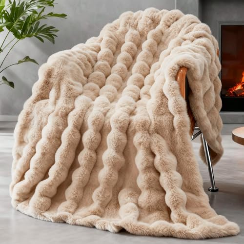 {"about_product": ["1. Supreme Softness & Warmth** Experience unmatched comfort with our **750GSM fluffy faux rabbit fur exterior** and **250GSM silky micromink fleece interior**. This ultra-soft throw blanket provides cozy warmth without overheating, making it perfect for chilly nights or relaxing year-round.", "2. Unique Bubble Wave Design** Elevate your decor with a **chic high-low wave texture** that adds visual interest to any space. Whether draped over a couch or layered on your bed, this blanket blends luxury with functionality.", "3. Premium Triple-Anti Fleece Fabric** Made from **high-quality fleece**, this throw is **anti-fading, anti-shedding, and anti-static** for long-lasting softness. **OEKO-TEX Standard 100 certified**, it’s safe for kids, pets, and sensitive skin.", "4. Thoughtful Gift Idea** A perfect present for family and friends! This plush blanket creates a cozy retreat for loved ones, whether they’re curling up with a book or binge-watching their favorite shows.", "5. Easy Care & Durable** Machine washable (cold, gentle cycle) and tumble dry on low. **No ironing or dry cleaning needed**—just fluff after washing to restore its lush texture. *Note: Initial wrinkles from packaging disappear after the first wash."], "product_description": null, "product_information": {"ASIN": "B0F43VKQSY", "Size": "50*60", "Brand": "SLIVERY&CHAVALIER", "Color": "Ivory White", "Style": "French", "Theme": "Warm", "Pattern": "Solid", "Seasons": "All", "Material": "Polyester", "Model Name": "Faux Fur Throw Blanket for Couch", "Unit Count": "1.0 Count", "Fabric Type": "100% Polyester", "Item Weight": "3.56 pounds", "Blanket Form": "Throw Blanket", "Manufacturer": "SLIVERY&CHAVALIER", "Fill Material": "Polyester", "Number of Items": "1", "Special Feature": "Lined", "Best Sellers Rank": "#2,346 in Home & Kitchen (See Top 100 in Home & Kitchen) #74 in Bed Throws", "Item model number": "Faux Fur Throw Blanket for Couch", "Product Dimensions": "1\"L x 1\"W", "Date First Available": "January 10, 2024", "Age Range (Description)": "Adult", "Fabric Warmth Description": "Lightweight", "Product Care Instructions": "Machine Wash", "Recommended Uses For Product": "Napping, Reading"}, "product_details": {"Brand": "SLIVERY&CHAVALIER", "Color": "Ivory White", "Style": "French", "Material": "Polyester", "Special Feature": "Lined"}}