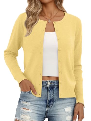 {"about_product": ["Fabric: Made of 71% polyester,18% acrylic and 11% polyamide.It is skin-friendly,soft and comfortable,with a lightweight crewneck design that is comfy and non-itchy,and not baggy", "Design: The lightweight cardigan for autumn features a slim-fit design,long sleeves,and a button-down front.With classic solid colors paired with knitting craftsmanship,it combines elegant charm and a trendy casual style", "Matching: The cardigan is suitable for autumn and winter wear.It can be easily paired with tops such as tank tops,vests,and shirts for daily casual outfits,and can also serve as a matching piece for any dress.It creates different dressing styles when paired with various garments,such as long skirts,jeans,and slim-fit tops", "Occasions: The cardigan is suitable for a wide range of occasions:office,work,school,dating,church,travel,business casual,daily wear,gatherings,home,outdoor activities,etc and is especially ideal for transitional seasons", "Size: Refer to size chart for details before purchase which we provide in our pictures.Hand wash in cold . Do not bleach"], "product_description": null, "product_information": {"ASIN": "B0F4D699RK", "Department": "womens", "Customer Reviews": "4.5 4.5 out of 5 stars \n\n (581)", "Best Sellers Rank": "#4,969 in Clothing, Shoes & Jewelry (See Top 100 in Clothing, Shoes & Jewelry) #32 in Women's Cardigans", "Date First Available": "April 10, 2025"}, "product_details": {"Origin": "Imported", "Fabric type": "71% Polyester, 18% Acrylic, 11% Polyamide", "Closure type": "Button", "Care instructions": "Hand Wash or Dry Clean"}}