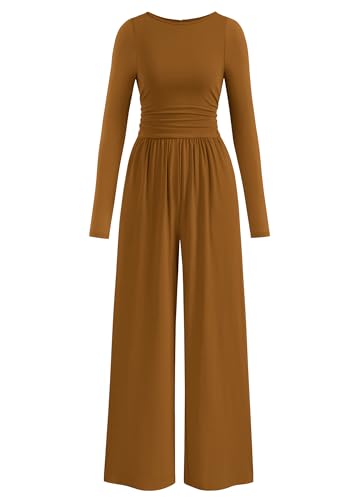 {"about_product": ["Size Tips: XS=US 0-2, S=US 4-6, M=US 8-10, L=US 12-14, XL=US 16, 2XL=US 20.Our long sleeve jumpsuits for women casual are made of soft, lightweight, skin-friendly, strechy material, long sleeve tops with soft lining, no see-through, ideal for all-day wear", "Features: Wide leg jumpsuits for women with ruched, high waist, show you more elegance.Jumpsuits for women dressy; casual jumpsuits for women; long rompers for women; casual loose overalls; petite jumpsuits for women; formal jumpsuits for women; fall fashion overalls", "Design: Unique waist ruched; wide leg jumpsuits very stretchy where it needs to be and is very flattering.Classic boat neck; back button closure makes one piece jumpsuits for women easy to put on and take off.Rompers jumpsuits with pockets; fall outfits for women 2025", "Versatility Match: women's jumpsuits perfect for fall 2025 with boots, sneakers, cardigan, fitted jacket or blazer, handbag; or dress it up with heels and jewelries for elegan look; belt at the highest point of your waist to create longer-looking legs and define your silhouette", "Occasion: Womens rompers and jumpsuits can be worn as business casual outfits; work meeting; travel vacation outfits; concert; jumpers and rompers for fall outfit; homecoming events; brunch; shopping; trips; wedding jumpsuits; maternity jumpsuit"], "product_description": null, "product_information": {"ASIN": "B0F4WYMG97", "Department": "Women", "Customer Reviews": "4.2 4.2 out of 5 stars \n\n (172)", "Product Warranty": "For warranty information about this product, please click here", "Best Sellers Rank": "#26,307 in Clothing, Shoes & Jewelry (See Top 100 in Clothing, Shoes & Jewelry) #45 in Women's Jumpsuits", "Date First Available": "September 1, 2025"}, "product_details": {"Origin": "Imported", "Fabric type": "Shell: 63%Polyester, 30%Viscose, 7%Elastane; Lining: 95%Polyamide, 5%Elastane", "Care instructions": "Machine Wash"}}