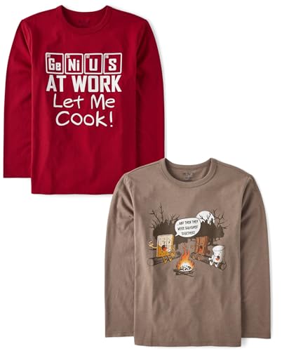 {"about_product": ["FABRICATION: 60% cotton/40% polyester jersey, imported", "MULTIPACK: 1 s'mores campfire graphic design, 1 'Genius At Work, Let Me Cook!' graphic design", "FIT & DESIGN: Rib-knit crew neck, long sleeves", "FEATURES: Tagless label", "THE CHILDREN'S PLACE — We offer a huge selection of kid's clothing! Shop us for jeans, shorts, leggings, chinos, polo shirts, dresses, pajamas, and accessories."], "product_description": "The Children’s Place offers a huge selection of kid's clothing! Shop us for jeans, shorts, leggings, chinos, polo shirts, dresses, uniforms, pajamas, and accessories. Made with premium quality materials at a great value. Kids clothing made simple.", "product_information": {"ASIN": "B0FKP91F1K", "Department": "boys", "Manufacturer": "The Children's Place", "Customer Reviews": "4.7 4.7 out of 5 stars \n\n (1,112)", "Best Sellers Rank": "#1,718 in Clothing, Shoes & Jewelry (See Top 100 in Clothing, Shoes & Jewelry) #1 in Boys' T-Shirts", "Date First Available": "July 31, 2025"}, "product_details": {"Origin": "Imported", "Fabric type": "60% Cotton, 40% Polyester", "Closure type": "Pull On", "Care instructions": "Machine Wash"}}