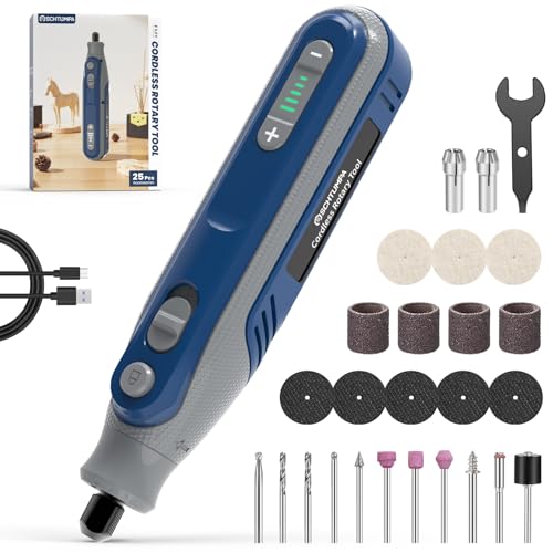 {"about_product": ["Powerful Motor with 5 Speed Precision Control (5,000–25,000 RPM): This cordless rotary tool kit is engineered for demanding tasks, the upgraded motor delivers 15% higher torque than standard 4V tools. 5 precise speed settings are ideal for multi-task like engraving, sanding, polishing, drilling, grinding. Cordless design provides unrestricted mobility for workshop or outdoor use.", "Low-Vibration Operation: Engineered with low-vibration motor, this cordless rotary tool delivers exceptionally smooth, quiet operation. Perfect for pet nails grooming, jewelry polishing, and delicate model making where stability matters most.", "Ultra-Comfortable with Secure Grip: Weighing just 0.6lbs with a sweat-resistant rubber grip, this rotary tool molds perfectly to your hand for fatigue-free control. The contoured design and recessed buttons prevent slips and accidental shutdowns - letting you work longer in comfort, even with sweaty palms.", "Long Runtime and USB-C Fast Charging: This mini rotary tool features a high-capacity 2000mAh battery for extended runtime, paired with USB-C fast charging for quick power-ups. The upgraded display clearly shows speed settings and battery life, helping you manage projects efficiently.", "Long-Lasting Professional Accessories:The rotary tool kit includes 25 upgraded attachments, with sanding bands engineered to last 10x longer than standard and accessories for home projects or crafting jobs, such as grinding, cutting, sanding, carving, polishing, drilling and more . The reinforced design eliminates frequent replacements—saving costs and preventing mid-task breakages—so you can focus on creating without interruption.", "Great Gift for DIY Enthusiast and Beginner"], "product_description": null, "product_information": {"ASIN": "B0F6CP8J1F", "Brand": "SCHTUMPA", "Color": "Navy Blue", "Style": "Professional, Navy Blue", "Voltage": "4 Volts", "Batteries": "1 A batteries required. (included)", "Item Weight": "9.6 ounces", "Manufacturer": "SCHTUMPA", "Power Source": "Battery Powered", "Minimum Speed": "5000 RPM", "Special Feature": "Cordless, Ergonomic Grip, Lightweight, Quiet, Variable Speed", "Special Features": "Cordless, Ergonomic Grip, Lightweight, Quiet, Variable Speed", "Battery Cell Type": "Lithium Ion", "Best Sellers Rank": "#71,393 in Tools & Home Improvement (See Top 100 in Tools & Home Improvement) #109 in Power Rotary Tools", "Item model number": "1", "Product Dimensions": "7.28 x 1.57 x 1.57 inches", "Batteries Included?": "Yes", "Batteries Required?": "Yes", "Included Components": "1 * 4V Cordless Rotary Tool, 1 * Spanner & 1 * USB-C Cable & 2 * Accessory Cases & 2 * Collet (3.2mm), 2 * Hss Twist Drill (3.2mm) & 2 * Diamond Bits (3.2mm) & 1 * Milling Cutter (3.2mm), 3 * Grinding Wheel with Shank (3.2mm) & 5 * Resin Cutting Disc & 1 * Wheel Mandrel (3.2mm), 4 * Upgraded Sanding Band & 1 * Sanding Drum Mandrel (3.2mm) & 3 * Polishing Head (3.2mm) & 1 * Polishing Head Shank (3.2mm)", "Number of Batteries": "1 A batteries required. (included)", "Date First Available": "April 25, 2025", "Maximum Rotational Speed": "25000 RPM", "Item dimensions L x W x H": "7.28 x 1.57 x 1.57 inches", "Recommended Uses For Product": "Carving, Cutting, Deburring, Drilling, Grinding, Polishing, Sanding, Smooth Pet's Nail"}, "product_details": {"Brand": "SCHTUMPA", "Color": "Navy Blue", "Voltage": "4 Volts", "Power Source": "Battery Powered", "Recommended Uses For Product": "Carving, Cutting, Deburring, Drilling, Grinding, Polishing, Sanding, Smooth Pet's Nail"}}