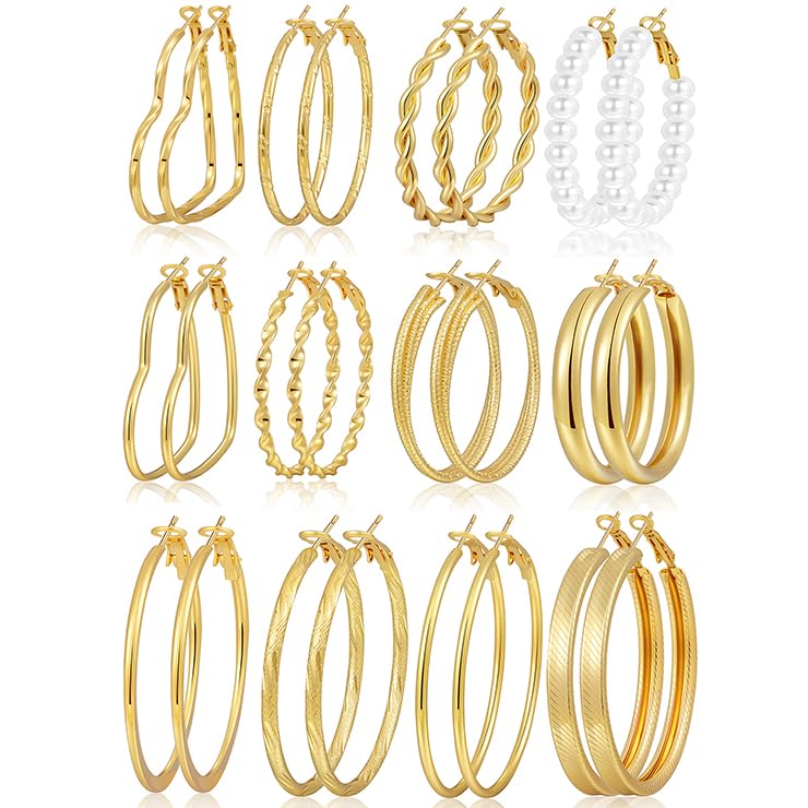 {"about_product": ["Gold Hoop Earrings Set: These 12 pairs of women's earrings include 3 pairs of stud earrings and 9 pairs of hoop earrings, made of high-quality metal, lead-free nickel, with low allergenicity, polished to maintain luster for a long time, without fading or rusting, making you look radiant.", "Please Note: Ear needles are soft, if the ear needles you received are bent, please don't worry, this is normal, just lightly straighten it", "Gift Idea: This earring set is a great choice thanks to its variety of styles. So you can give it to your mothers, lovers, friends or yourself onbirthday or other festivals, just to express the most sincere love to them", "Suit for Any Occasions: Our hoop earrings set off your charming temperament in any occasions, perfect for wedding, engagement, anniversary, graduation, party, prom, etc", "FANDY Jewelry: We're committed to providing consumers with high-quality and stylish jewelry at an affordable price. Classic, fashionable, set, cost-effective, high-quality jewelry"], "product_description": "Silver Hoop Earrings Set: These 12 pairs of women's earrings include 3 pairs of stud earrings and 9 pairs of hoop earrings, made of high-quality metal, lead-free nickel, with low allergenicity, polished to maintain luster for a long time, without fading or rusting, making you look radiant.", "product_information": {"ASIN": "B0F7H9TBSQ", "Department": "womens", "Customer Reviews": "4.3 4.3 out of 5 stars \n\n (538)", "Product Warranty": "For warranty information about this product, please click here", "Best Sellers Rank": "#3,068 in Clothing, Shoes & Jewelry (See Top 100 in Clothing, Shoes & Jewelry) #25 in Women's Hoop Earrings", "Date First Available": "May 5, 2025"}, "product_details": {"Gem type": "No Gemstone", "Material": "Zinc", "Metal type": "Zinc", "Back Finding": "Latch Back", "Earring design": "Hoop", "Item type name": "Hoop Earrings"}}