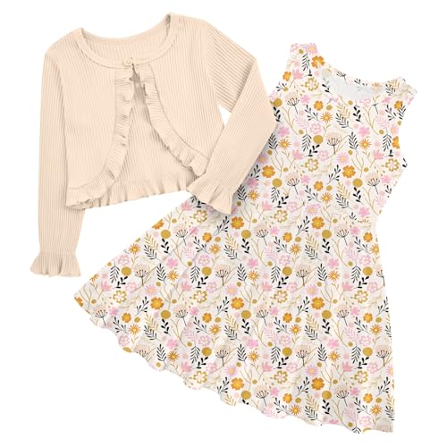 {"about_product": ["Stylish 2 Piece Set: Warm and lightweight toddler floral dresses and cardigan set, exquisite workmanship, soft texture, skin-friendly, brings your girls comfortable feelings, and it's perfect for every season spring, summer, autumn and winter", "Design: The girls dress with adorable prints make toddler girls look more sweet and lovely. Long sleeve cardigan features a playful ruffle trim and single button closure for easy on and off", "Original Patterns: Dress with cardigan set with lots of printed patterns, mermaids, sequins, butterflies, fluid, tie dye, back to school, halloween, thanksgiving, christmas patterns and more. This Fall Dress suitable for 2-8 years girls", "Occasion: This toddler dress set suitable for playing outside, birthday party, beach, wedding, girl photography, daily wear, family day or any occasion, unique and attractive", "Package Included: 1 x sleeveless dress + 1 x long sleeve cardigan, and it's hand washable and machine washable"], "product_description": null, "product_information": {"ASIN": "B0F7Y1BB7H", "Department": "baby-girls", "Customer Reviews": "4.7 4.7 out of 5 stars \n\n (127)", "Best Sellers Rank": "#26,237 in Clothing, Shoes & Jewelry (See Top 100 in Clothing, Shoes & Jewelry) #92 in Girls' Casual Dresses", "Date First Available": "May 8, 2025"}, "product_details": {"Origin": "Imported", "Neck style": "Crew Neck", "Fabric type": "Cotton+Milk Silk", "Care instructions": "Machine Wash"}}